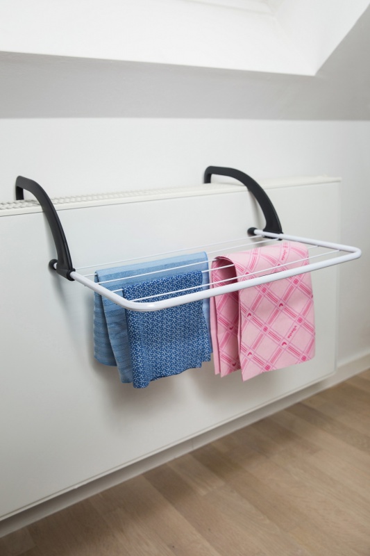 Suszarka grzejnikowa z wytrzyma艂ymi ramionami. Mo偶liwa do zawieszenia tak偶e na balkonie. Idealna na ma艂e, codzienne pranie. Posiada regulowane, sk艂adane ramiona z tworzywa sztucznego. Wyposa偶ona w os艂onki zapobiegaj膮ce zarysowaniom powierzchni podczas stosowania.