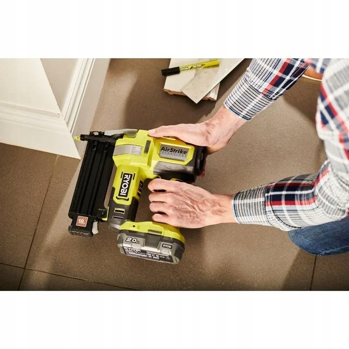 Sztyfciarka Ryobi 18V zasilana jest nowoczesnymi akumulatorami 18V w technologii Li-ion, dzięki którym operator może pracować dłużej i wydajniej na jednym cyklu ładowania. Urządzenie pozwala na bezprzewodową pracę bez konieczności podłączenia sprężarki oraz węża powietrza, co podkreśla komfort użytkowania. Sztyfciarka wyposażona została w funkcję beznarzędziowego odblokowania zablokowanych gwoździ. Wbudowana dioda LED oświetla miejsce pracy, jak również wprowadza możliwość jej prowadzenia w ciemnościach.