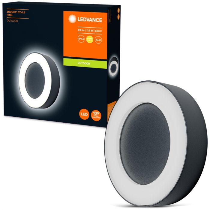 Kinkiet Ogrodowy STYLE RING serii ENDURA renomowanej i cenionej marki LEDVANCE w kolorze ciemnoszarym to nowoczesne oświetlenie o mocy światła 13W, która cechuje się bardzo dobrą jakością emitowanego światła dzięki technologi LED, wysoką trwałością, odpornością na ciężkie warunki atmosferyczne. (wodoodporność). Produkt idealnie sprawdzi się jako zewnętrzne i wewnętrzne oświetlenie. Jest to praktyczne i eleganckie rozwiązanie zwłaszcza dla domów jednorodzinnych, willi, ogrodów, tarasów, balkonów i nowoczesnych osiedli. Kinkiet LED został wyposażony w nowoczesne i energooszczędne źródło światła LED o mocy 13W, emituje silne, ciepłe białe światło o temperaturze barwowej 3000K, uzyskując przy tym strumień świetlny na poziomie aż 480lm.