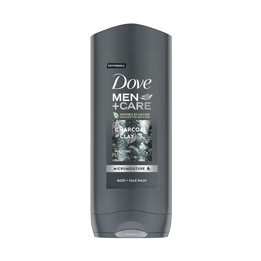 Formuła żelu pod prysznic Dove Men+Care Charcoal+Clay została opracowana z myślą o potrzebach męskiej skóry, a technologia MicroMoisture zapewnia jej odpowiednią pielęgnację. Testowana dermatologicznie formuła aktywuje swoją nawilżającą moc podczas spieniania, by pomóc skórze w walce z jej przesuszeniem i podrażnieniami.