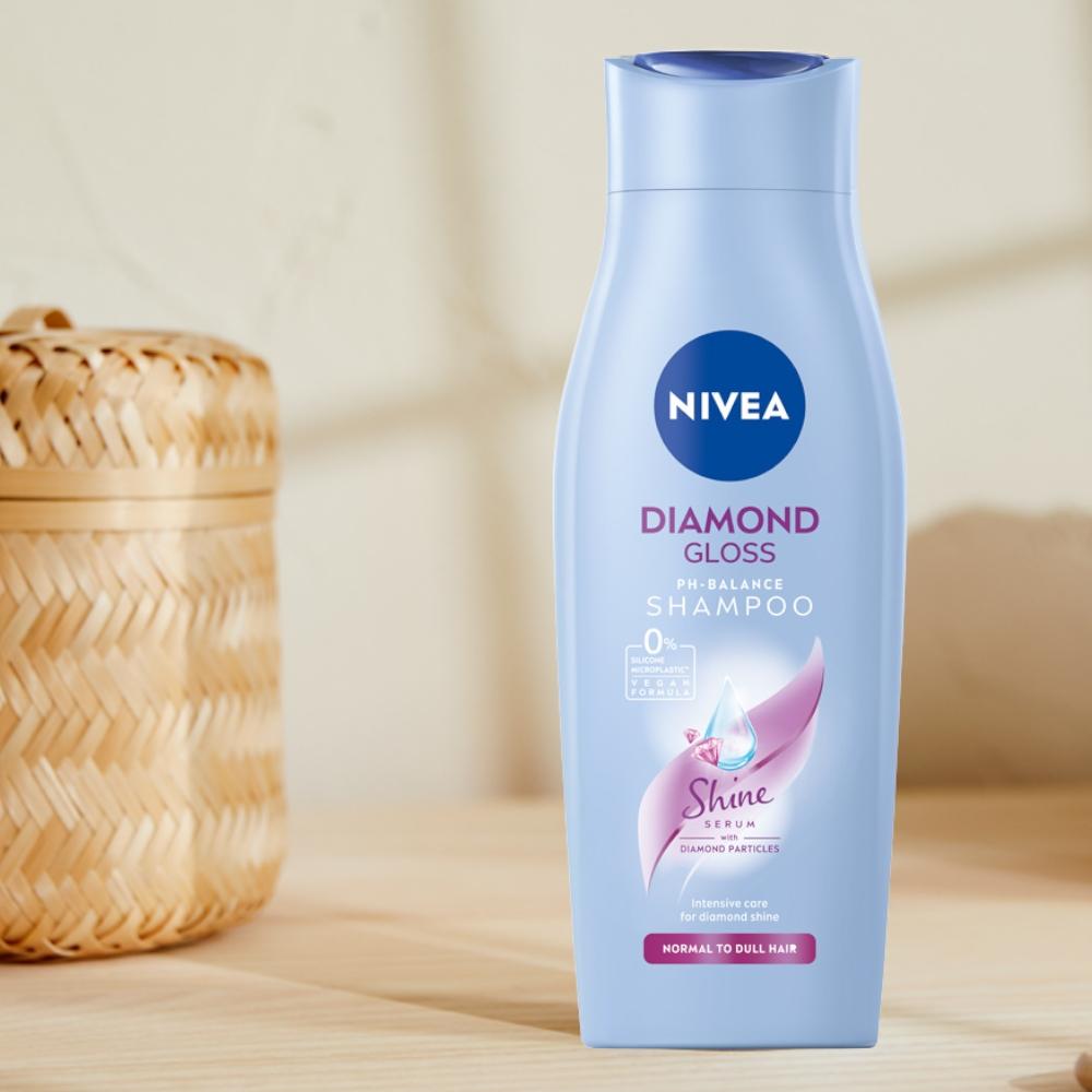 • Szampon NIVEA Diamond Gloss nawilża włosy i sprawiając, że są gładkie w dotyku