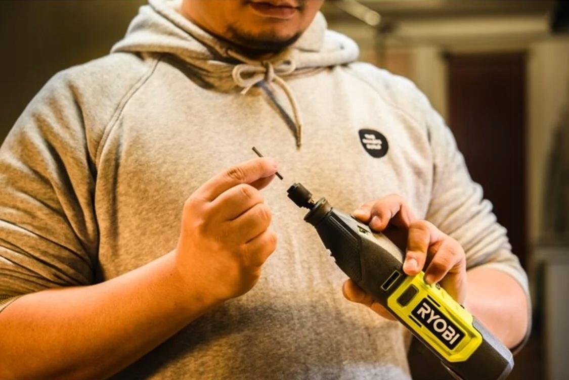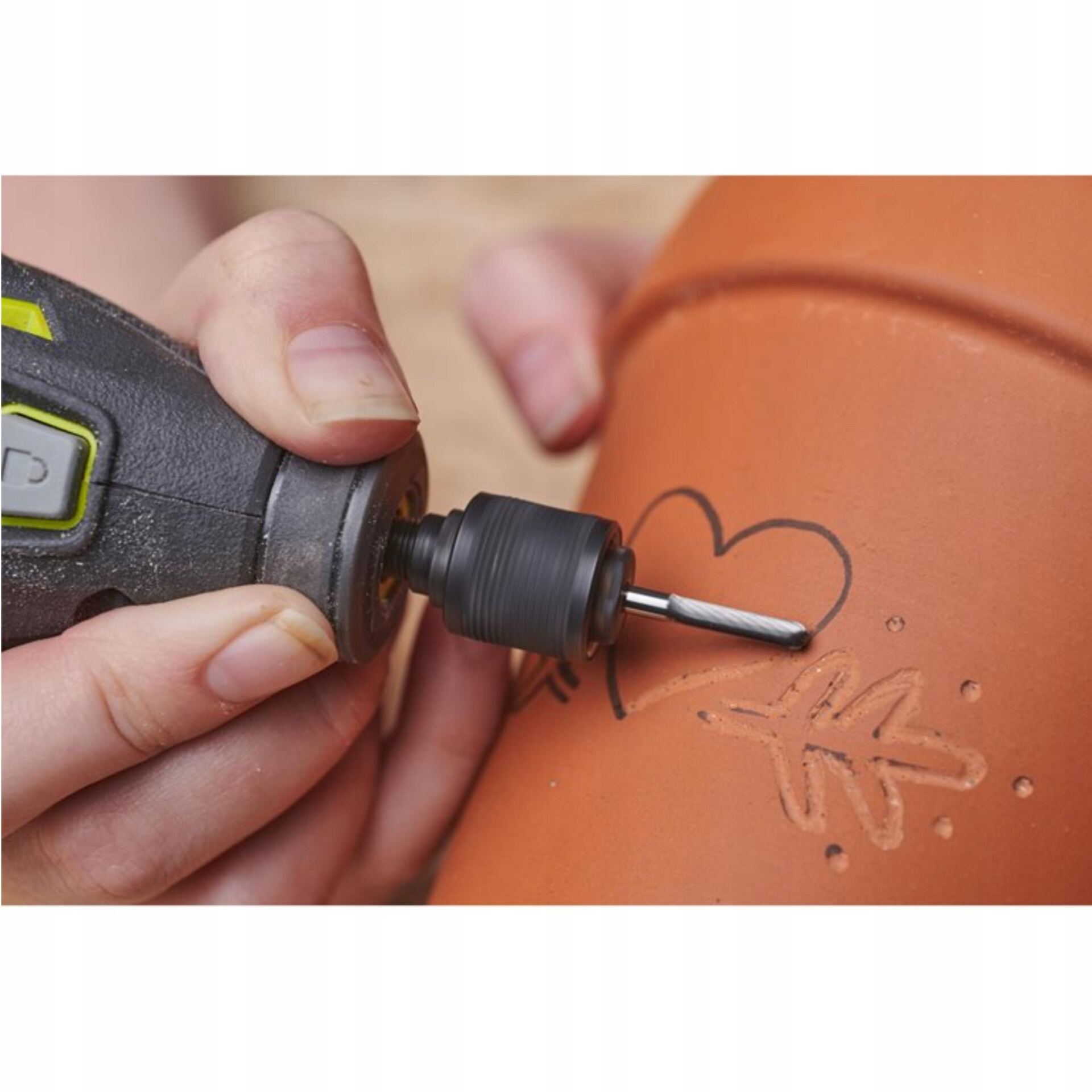 - Uniwersalny i kompatybilny z narzędziami obrotowymi RYOBI® i innymi narzędziami obrotowymi z tuleją zaciskową 3,2 mm / 1/8”