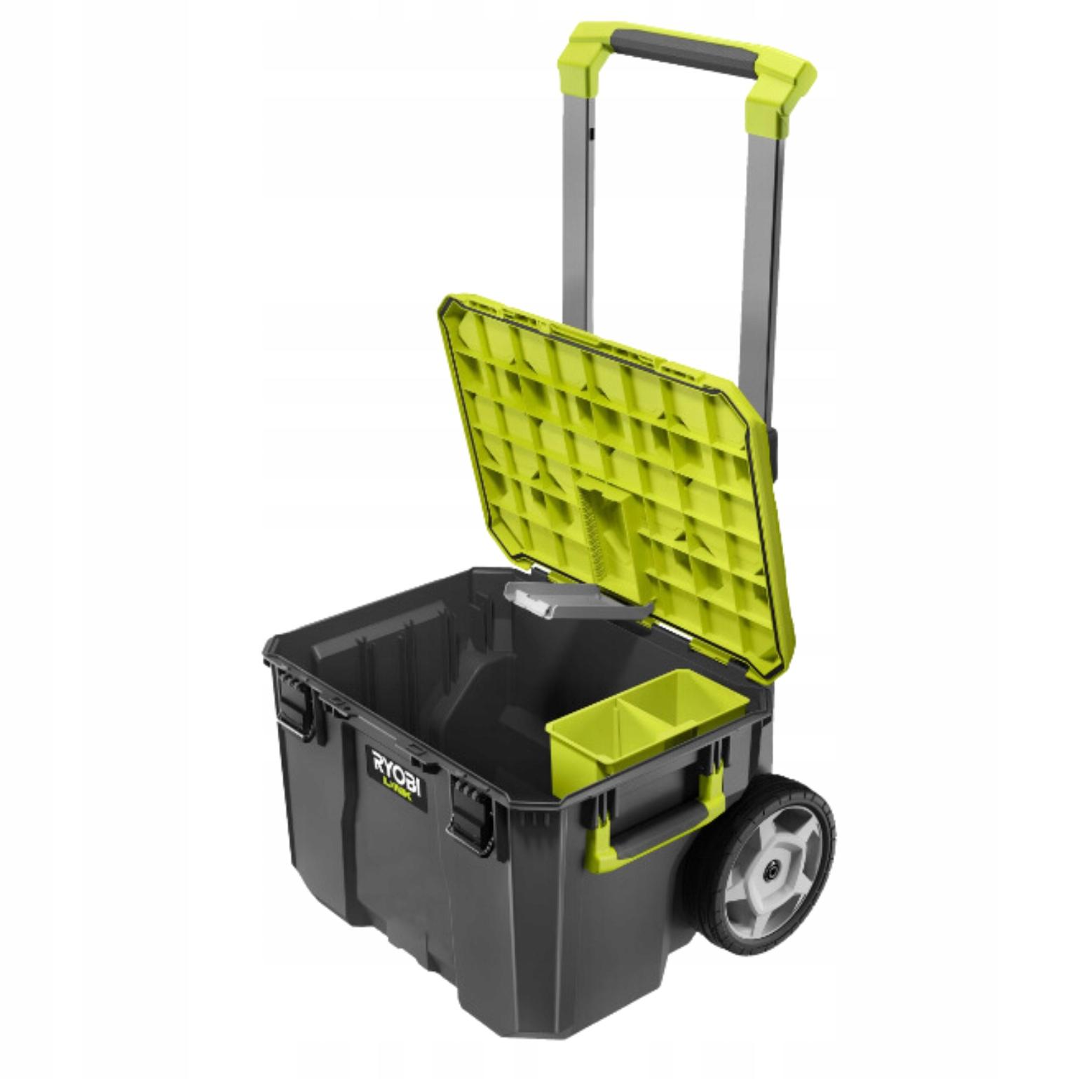 - Skrzynia narzędziowa z kołami RSL201 – element systemu RYOBI LINK to niezawodny i funkcjonalny produkt, który spełni oczekiwania nawet najbardziej wymagających użytkowników. Solidna konstrukcja, duża pojemność, udźwig do 90 kg, wodoodporność i odporność na kurz, łatwy transport oraz funkcjonalność to cechy, które sprawiają, że skrzynia RSL201 jest idealnym wyborem dla każdego majsterkowicza. Solidna i wytrzymała konstrukcja. Skrzynia narzędziowa RSL201 to niezawodny wybór dla majsterkowiczów i użytkowników domowych.