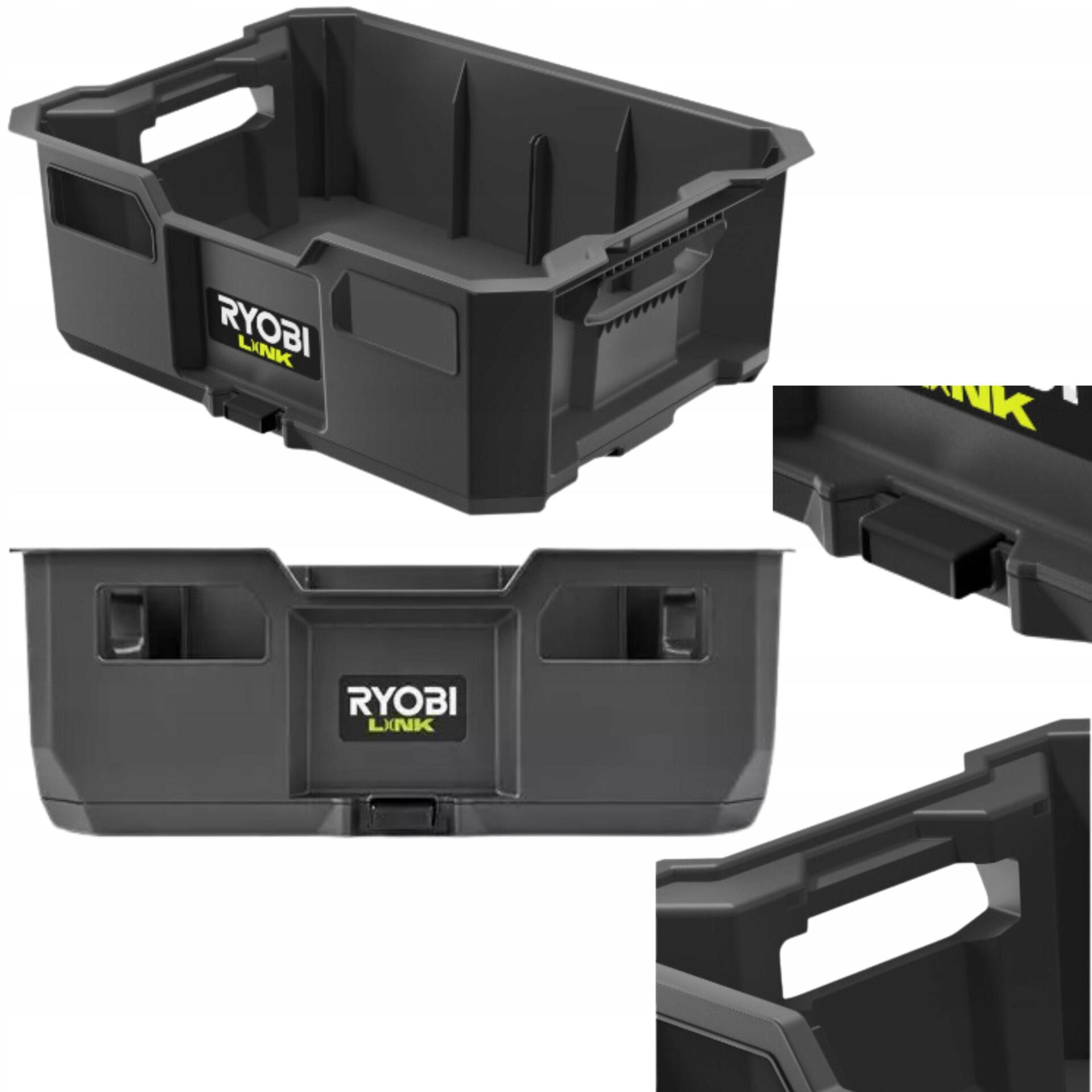 Skrzynia narzędziowa została zaprojektowana tak, aby sprostać najtrudniejszym sytuacjom dzięki odpornemu na uderzenia materiałowi i nośności 23 kg. Dzięki zintegrowanym uchwytom można zawiesić skrzynkę na szynach ściennych RYOBI LINK lub umieścić ją na wózku RYOBI LINK, co zapewnia maksymalną elastyczność. Skrzynia jest częścią modułowego systemu przechowywania RYOBI LINK.
