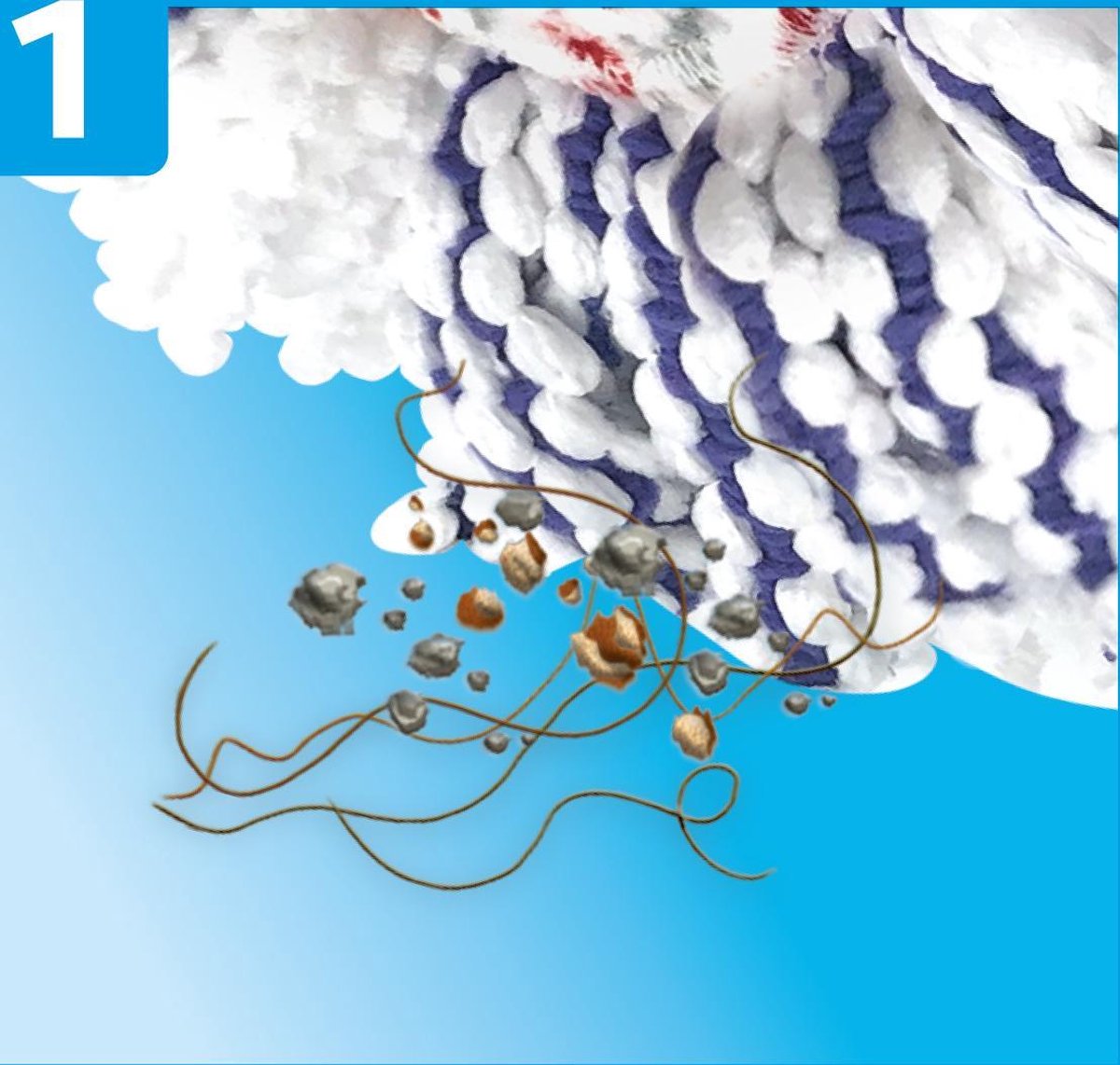 Dwukolorowe, tr贸jwymiarowe w艂osie zapewnia czysto艣膰 bez smug i zarysowa艅 nawet najdelikatniejszych powierzchni i doskonale radzi sobie z uporczywym brudem i drobinami.