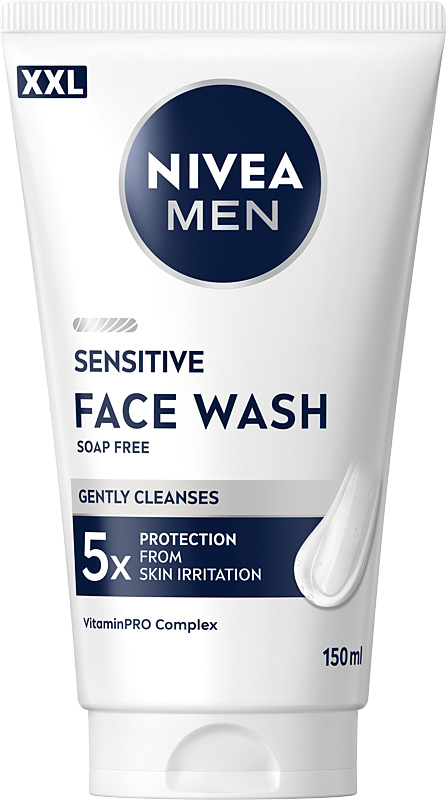 Wrażliwa lub podrażniona skóra? Odkryj Żel do mycia twarzy NIVEA® MEN Sensitive XXL. Delikatna formuła z kompleksem VitaminPRO (ekstraktem z rumiankiu, prowitaminą B5 i witaminą E) zapewnia natychmiastową ulgę od 5 oznak podrażnionej skóry: pieczenia, zaczerwienienia, uczucia suchej i napiętej skóry, swędzenia. Kojąca formuła żelu do mycia twarzy natychmiast odświeża i dokładnie oczyszcza skórę, usuwając wszelkie zanieczyszczenia. Produkt szybko się wchłania, nie jest tłusty i nie pozostawia uczucia lepkości. W efekcie Twoja skóra jest dokładnie oczyszczona i odświeżona, byś mógł czuć się pewnie każdego dnia. Formuła żelu nie zawiera alkoholu etylowego. Tolerancja dla skóry została potwierdzona dermatologicznie wśród mężczyzn o wrażliwej skórze twarzy.