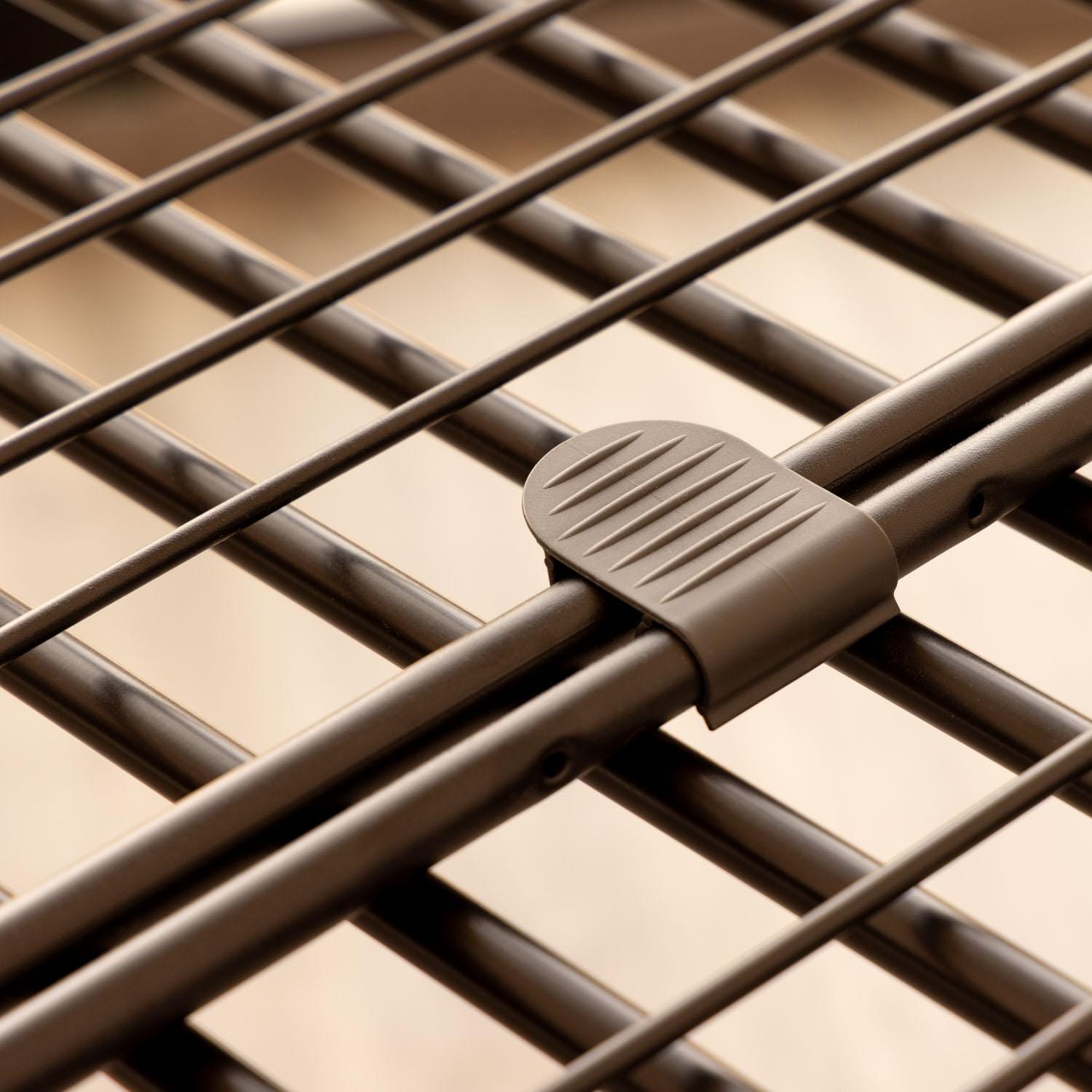 Stelaż znajduje się na wysokości 1 metra od podłogi, dzięki czemu rozwieszanie prania jest wygodniejsze, a duże gabaryty jak pościel czy koce nie muszą być kilkukrotnie składane, aby uniknąć kontaktu z podłogą.