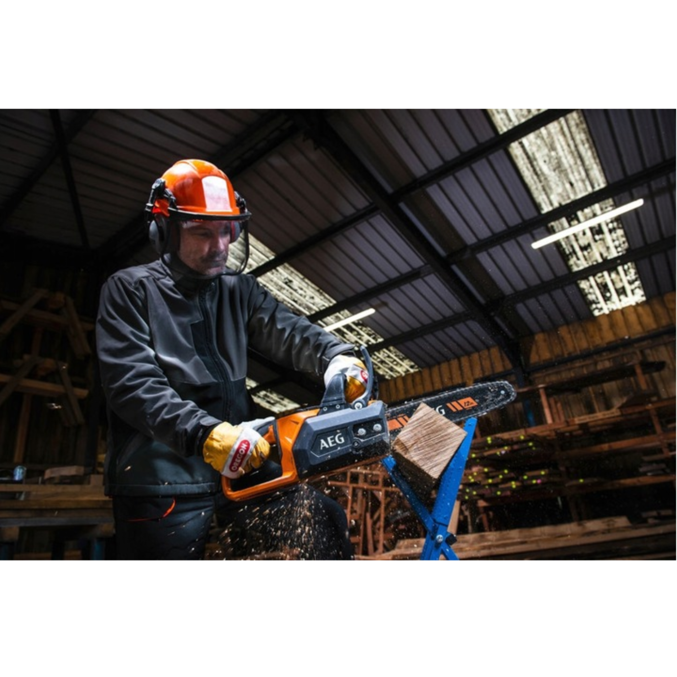 - Mechaniczny hamulec łańcucha i elektroniczny hamulec silnika zapewniają większe bezpieczeństwo