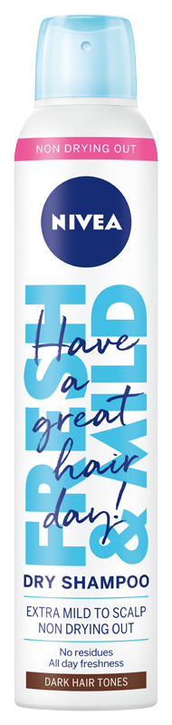 Nigdy więcej złych dni dla włosów! Ciesz się w pełni każdym dniem dzięki Suchemu szamponowi dla BRUNETEK NIVEA FRESH & MILD! Ekspresowo odśwież swoje włosy i zachowaj ich naturalny kolor dzięki innowacyjnej formule 3w1 zapewniającej: całodniową świeżość z przyjemnym zapachem, pełną objętość i delikatne oczyszczanie bez podrażniania skóry głowy. Suchy szampon do włosów brązowych został opracowany specjalnie dla ciemnego odcieni włosów i nie pozostawia białego osadu na włosach. NIVEA FRESH & MILD suchy szampon dla kobiet- dla natychmiastowego uczucia świeżości Twoich blond włosów!