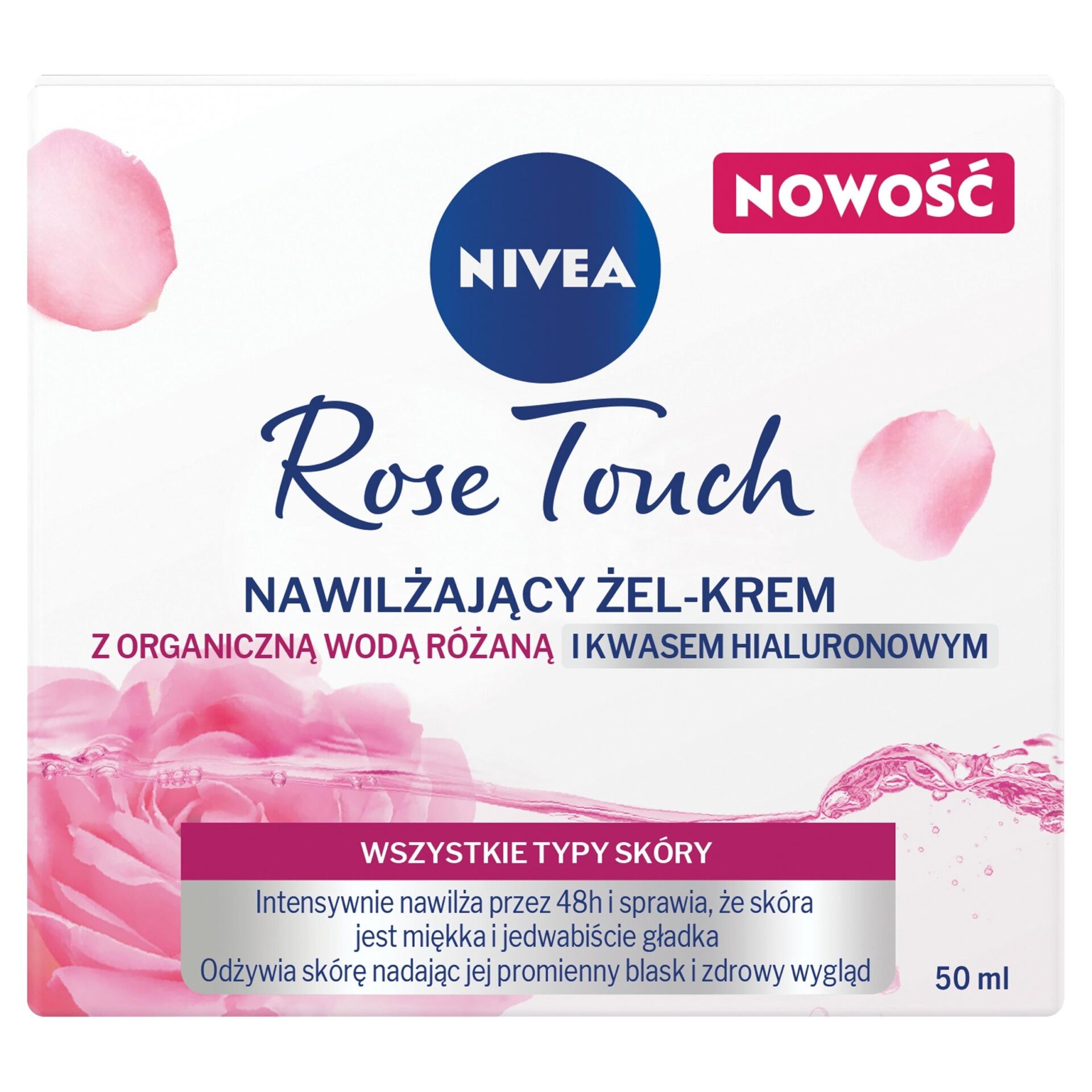 - Krem do cery NIVEA Rose Touch zapewnia 48h nawilżenia