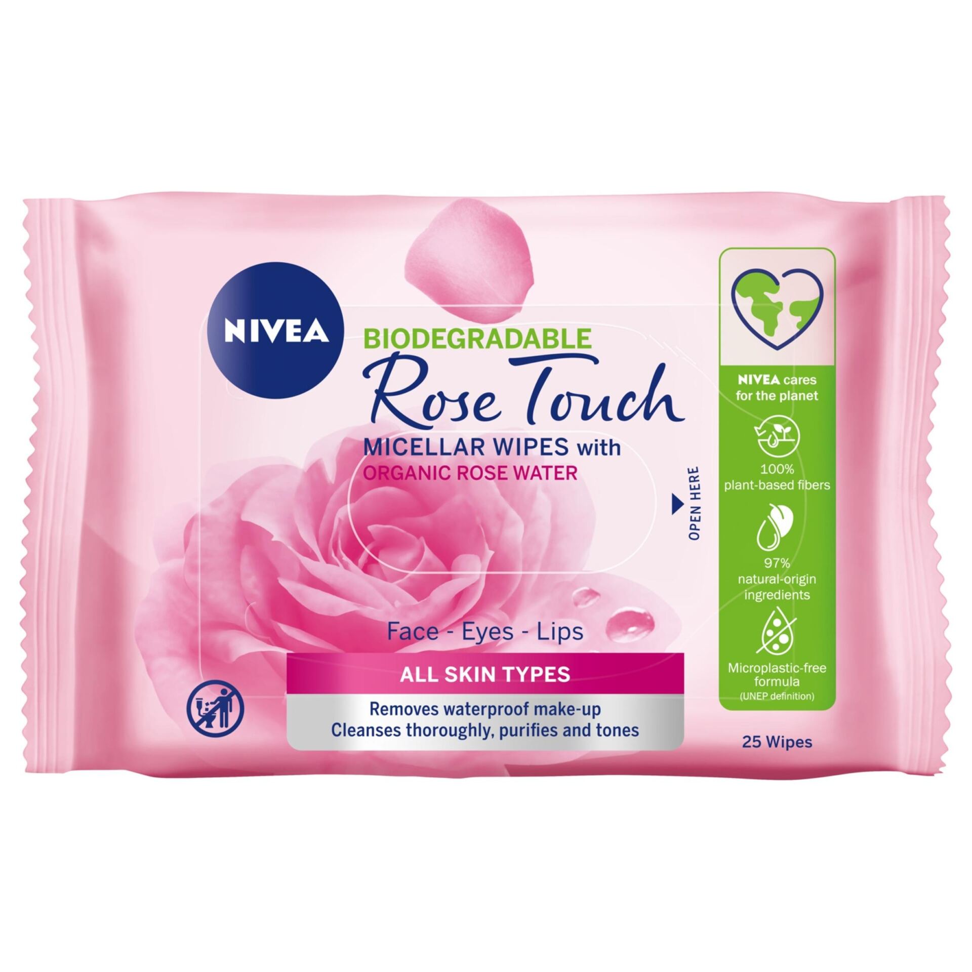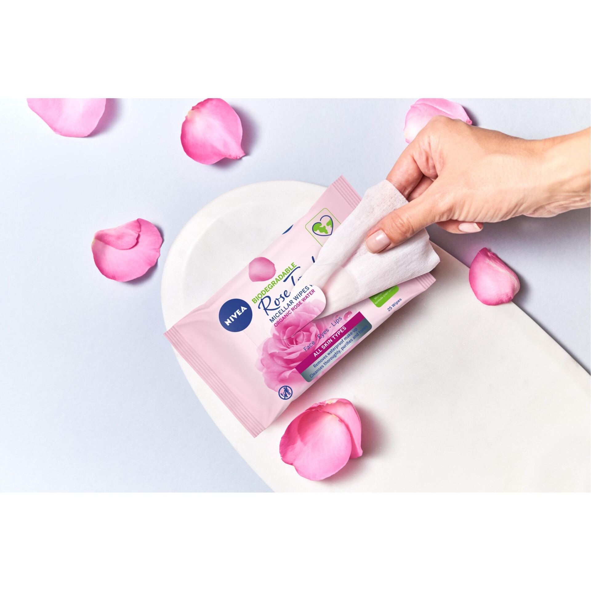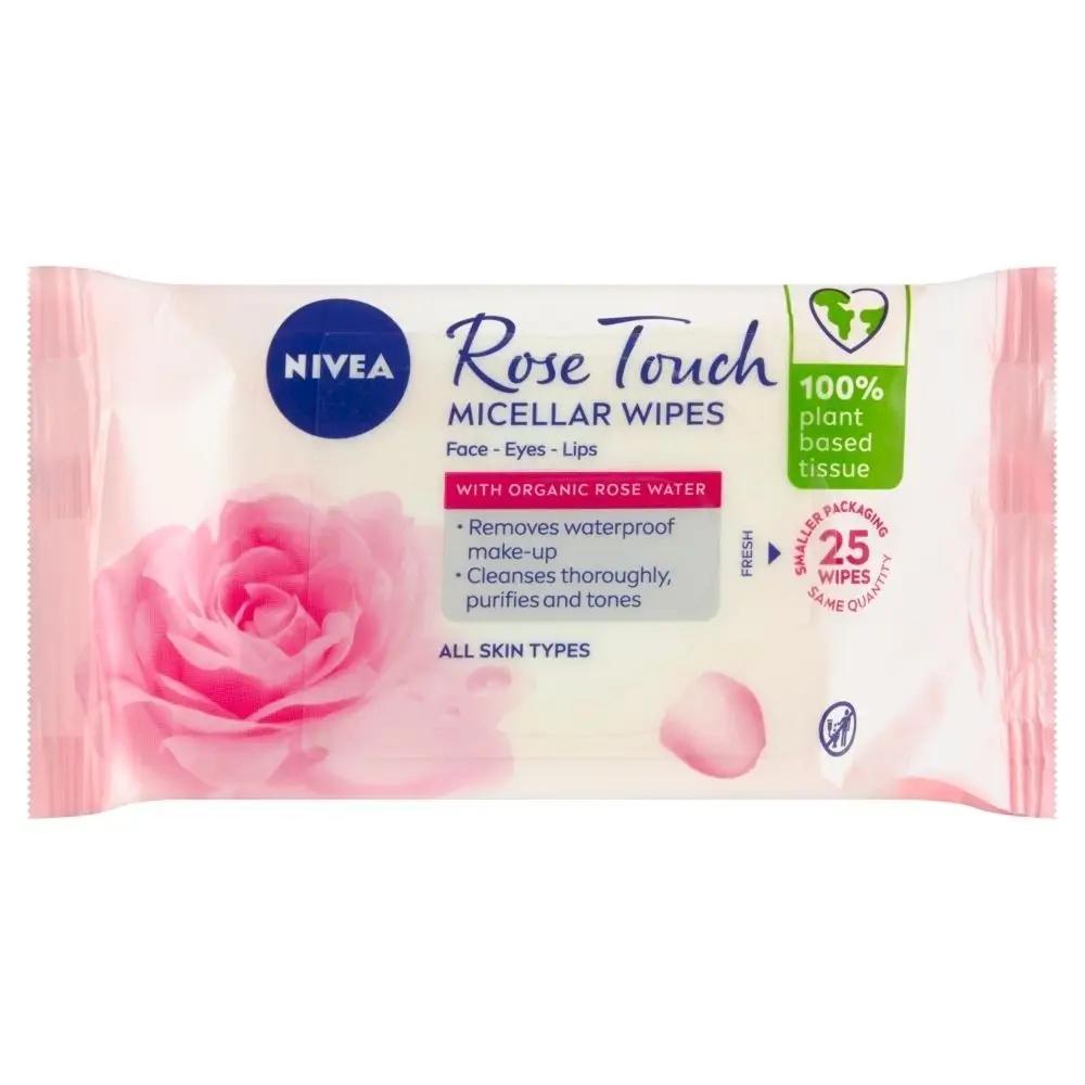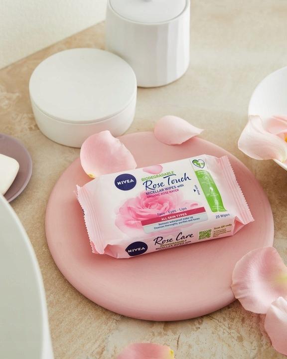 NIVEA ROSE TOUCH BIODEGRADOWALNE MICELARNE CHUSTECZKI DO DEMAKIJAŻU Z ORGANICZNĄ WODĄ RÓŻANĄ 25 SZT.
