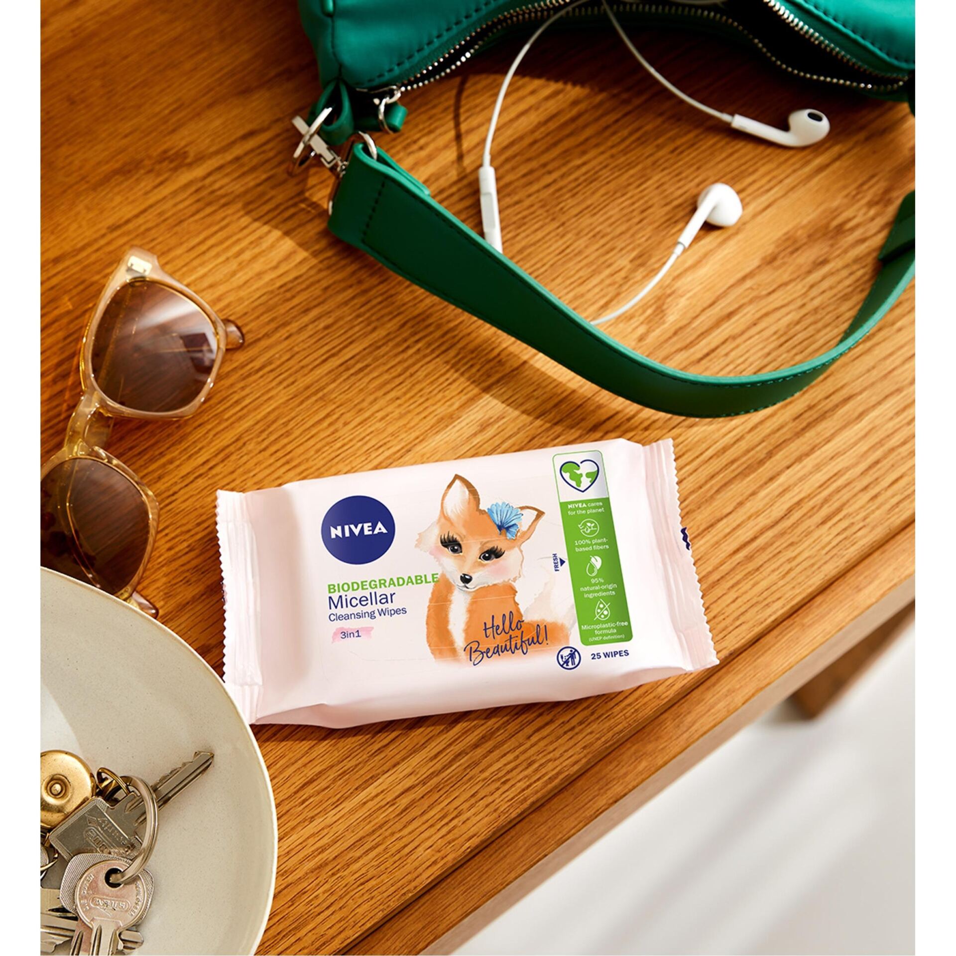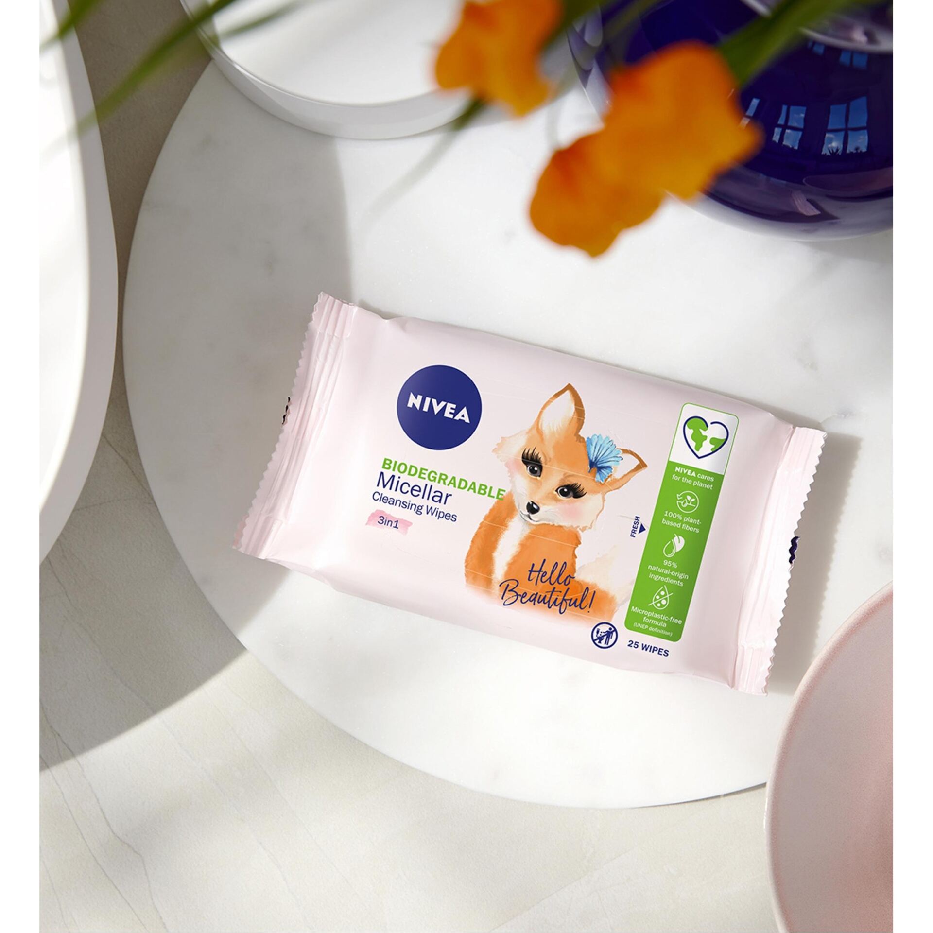 Formuła jest również wolna od mikroplastików*, w trosce o Twoją skórę i naszą planetę. Wygodne opakowanie zawiera 25 chusteczek wykonanych w 100% z włókien roślinnych. Chusteczki do demakijażu to świetny wybór do oczyszczania w trakcie podróży, czy odświeżenia w ciągu dnia – są idealne zarówno do torebki jak i walizki!