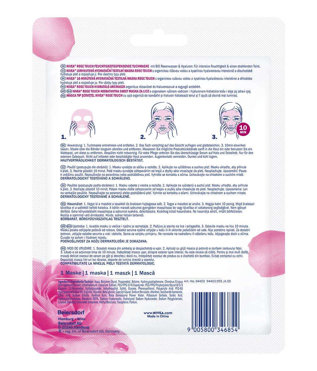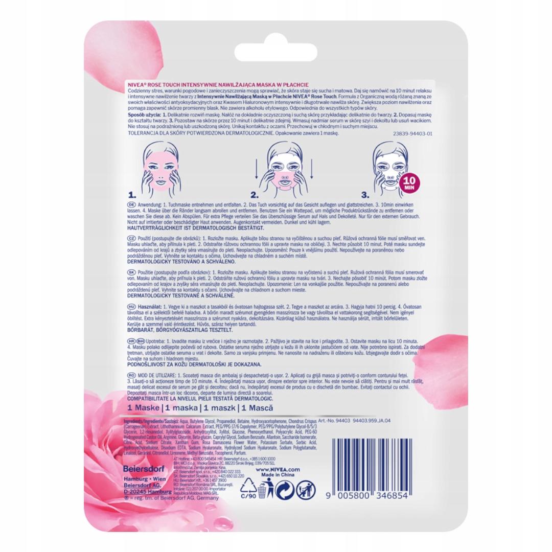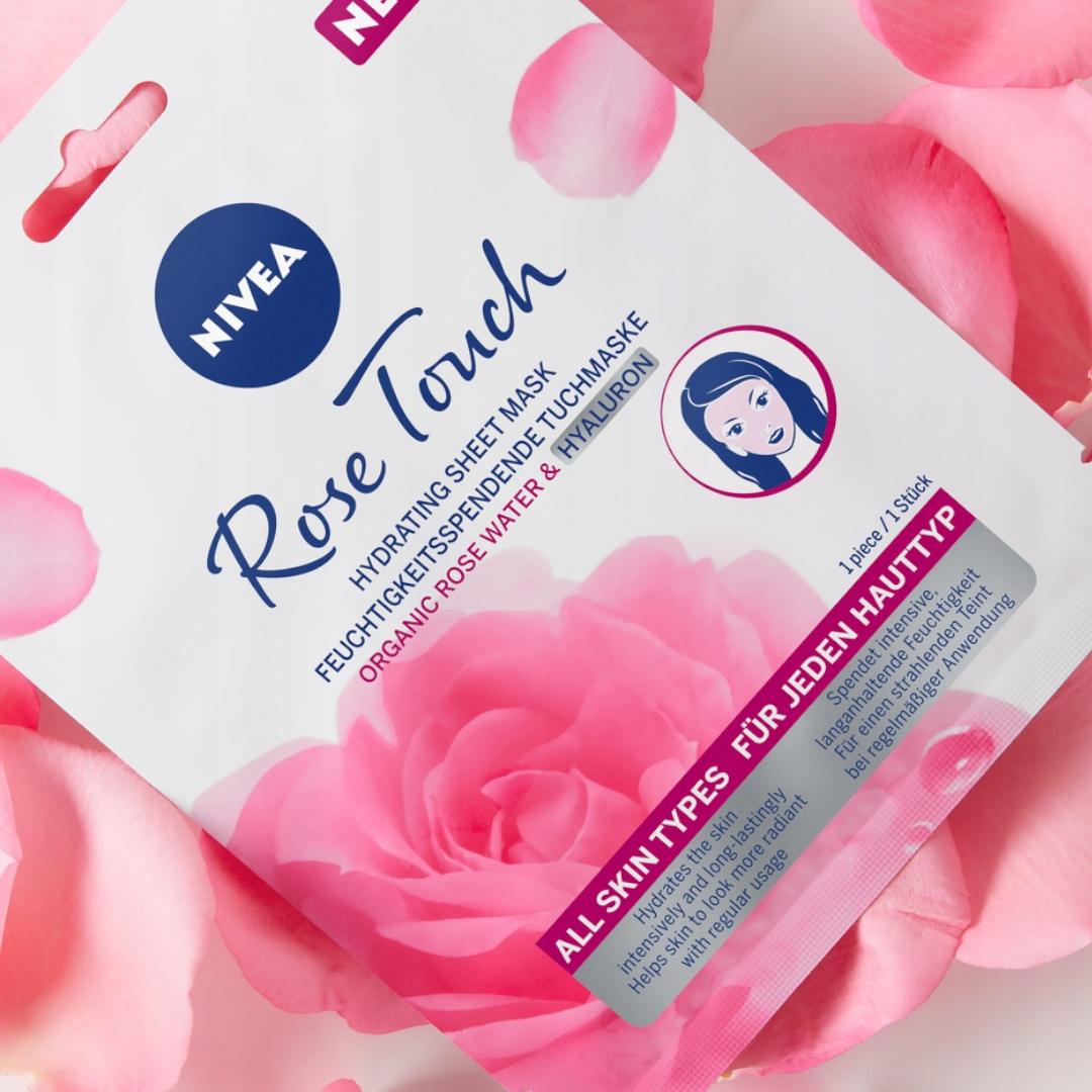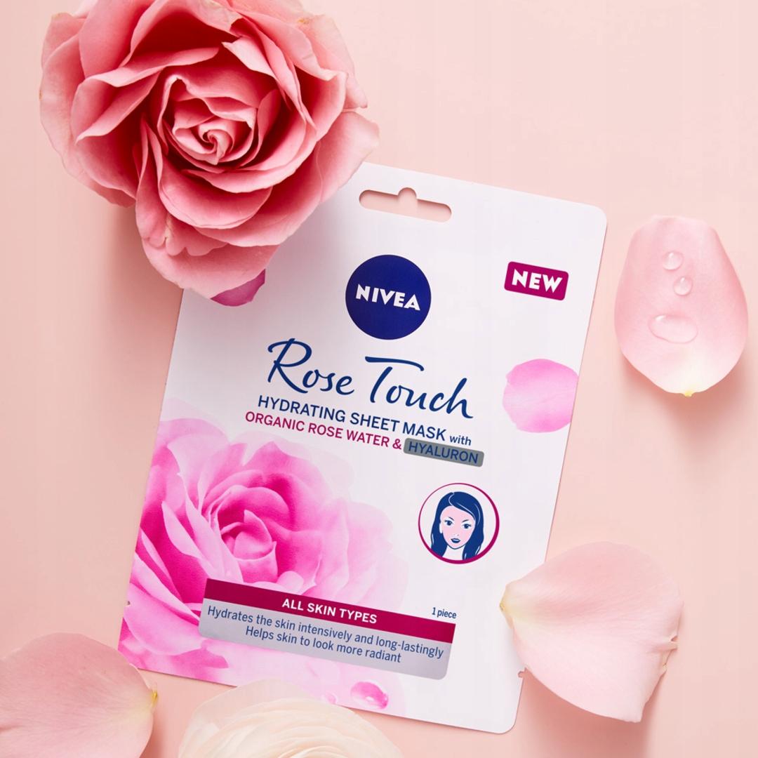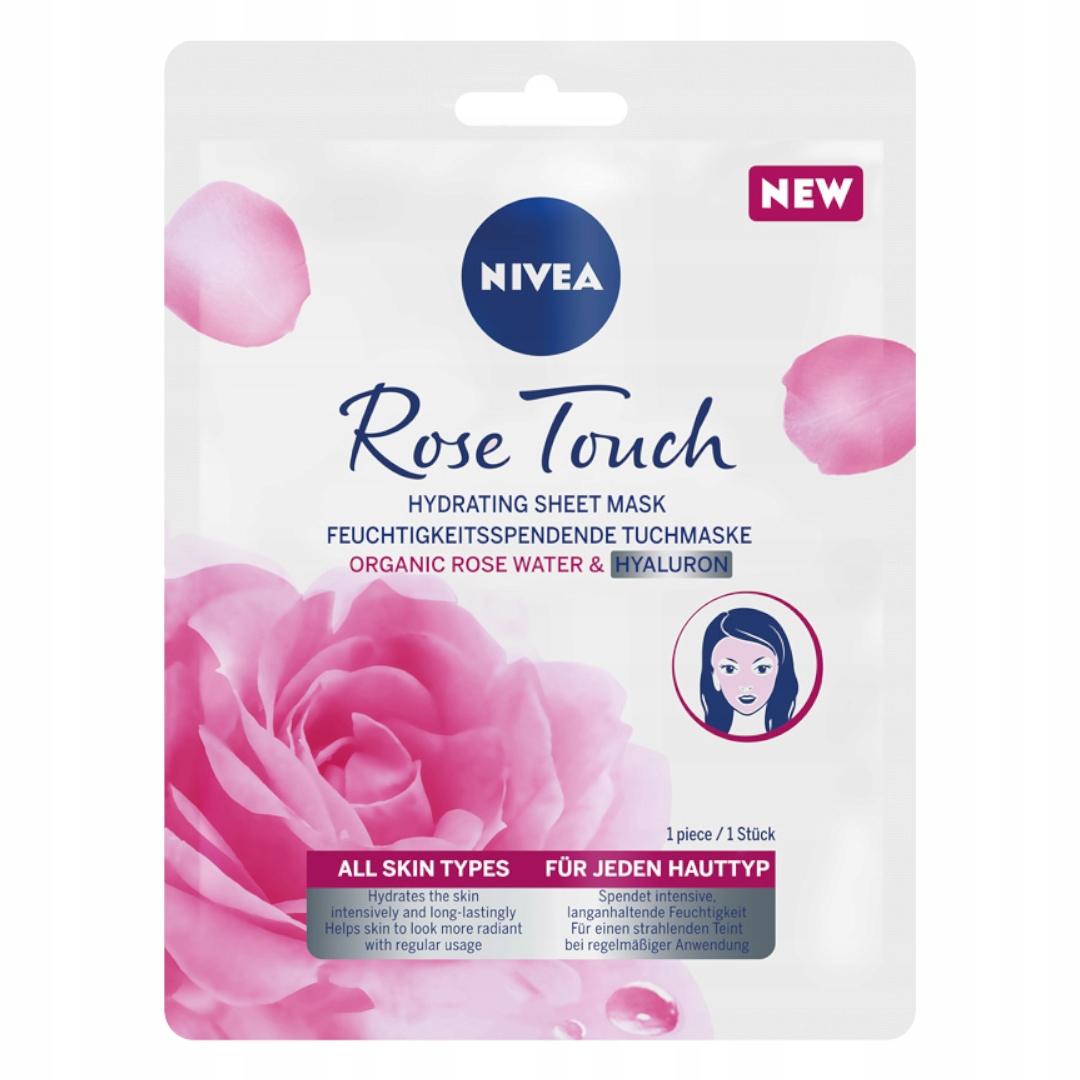NIVEA ROSE TOUCH Intensywnie nawilżająca maska w płachcie zawiera formułę z Organiczną wodą różaną, znaną ze swoich właściwości antyoksydacyjnych i Kwasem Hialuronowym. Codzienny stres, warunki pogodowe i zanieczyszczenia mogą sprawiać, że skóra staje się sucha i matowa. Daj się namówić na 10 minut relaksu i intensywne nawilżenie twarzy! Maska intensywnie i długotrwale nawilża skórę, zwiększa poziom nawilżenia oraz pomaga zapewnić skórze promienny blask. Nie zawiera alkoholu etylowego. Odpowiednia dla wszystkich typów skóry. Tolerancja dla skóry potwierdzona dermatologicznie. Opakowanie zawiera 1 maskę. To idealny sposób na relaks dla skóry, dodatkową dawkę pielęgnacji lub przygotowanie skóry do dalszych zabiegów pielęgnacyjnych.