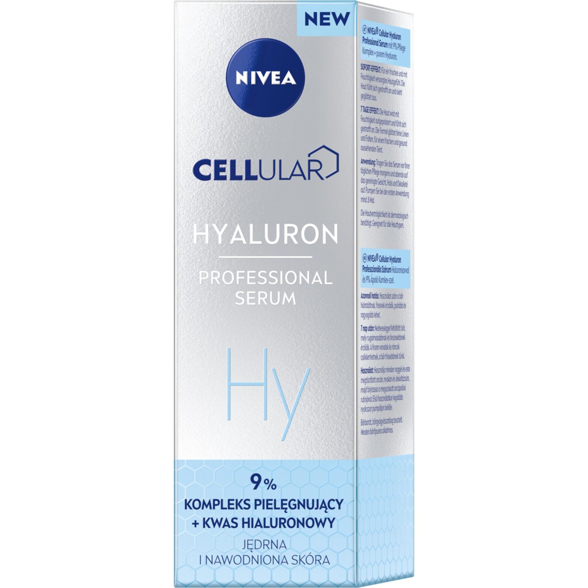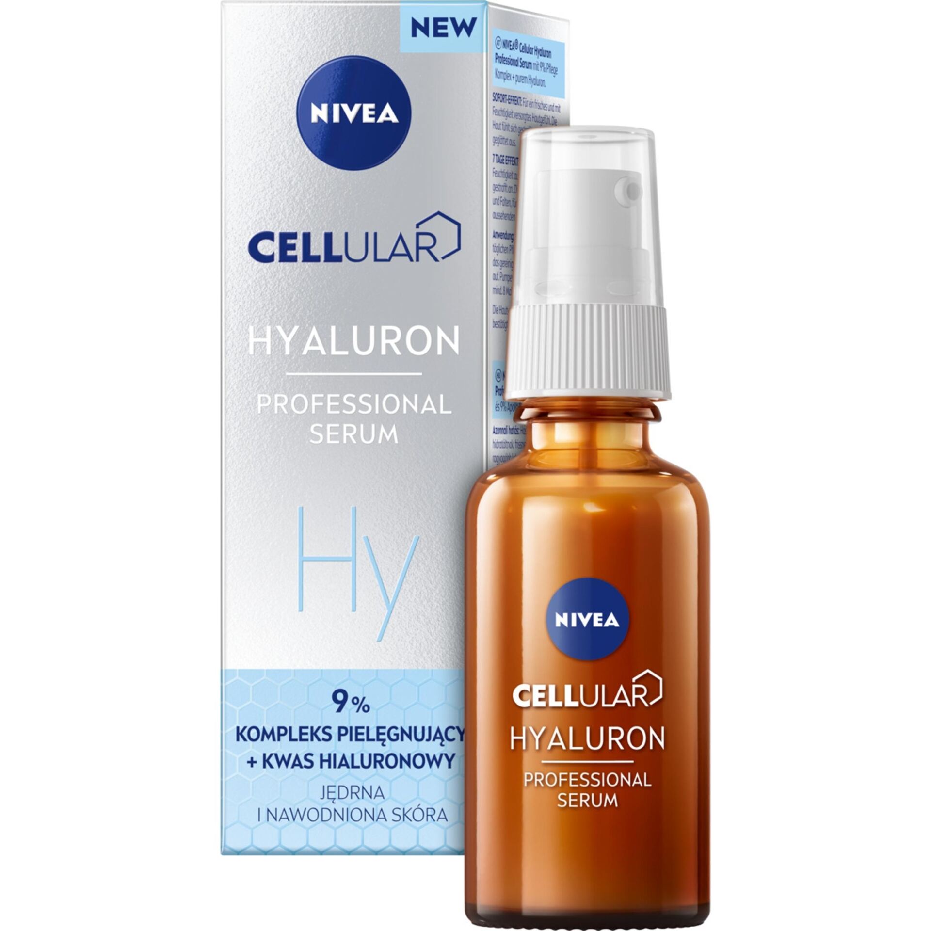 - Serum NIVEA zawiera 9% kompleks pielęgnujący i Kwas Hialuronowy