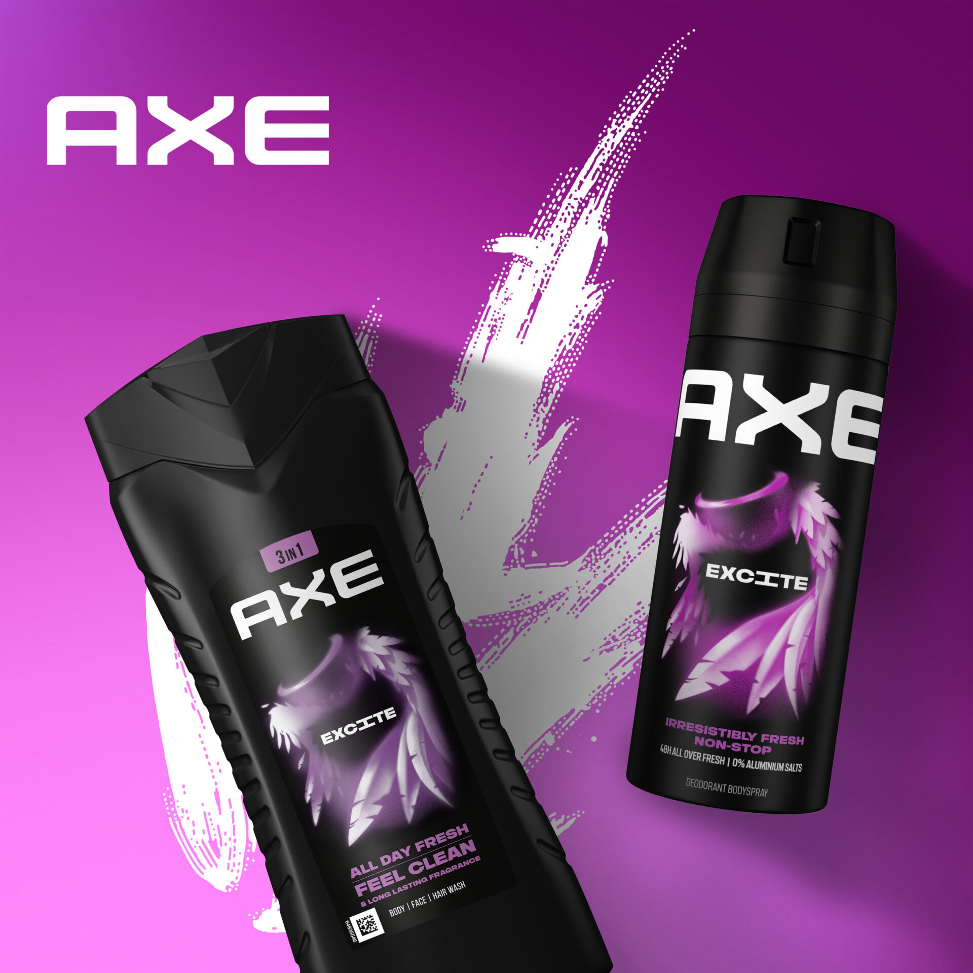 - AXE Excite zapewnia idealną pielęgnację skóry, dzięki czemu poczujesz czystość i odświeżenie.
