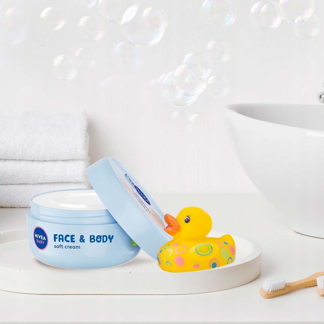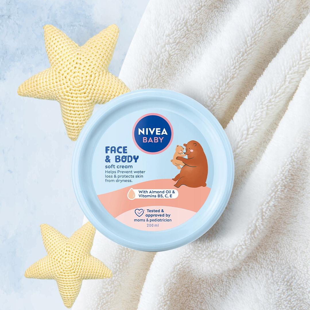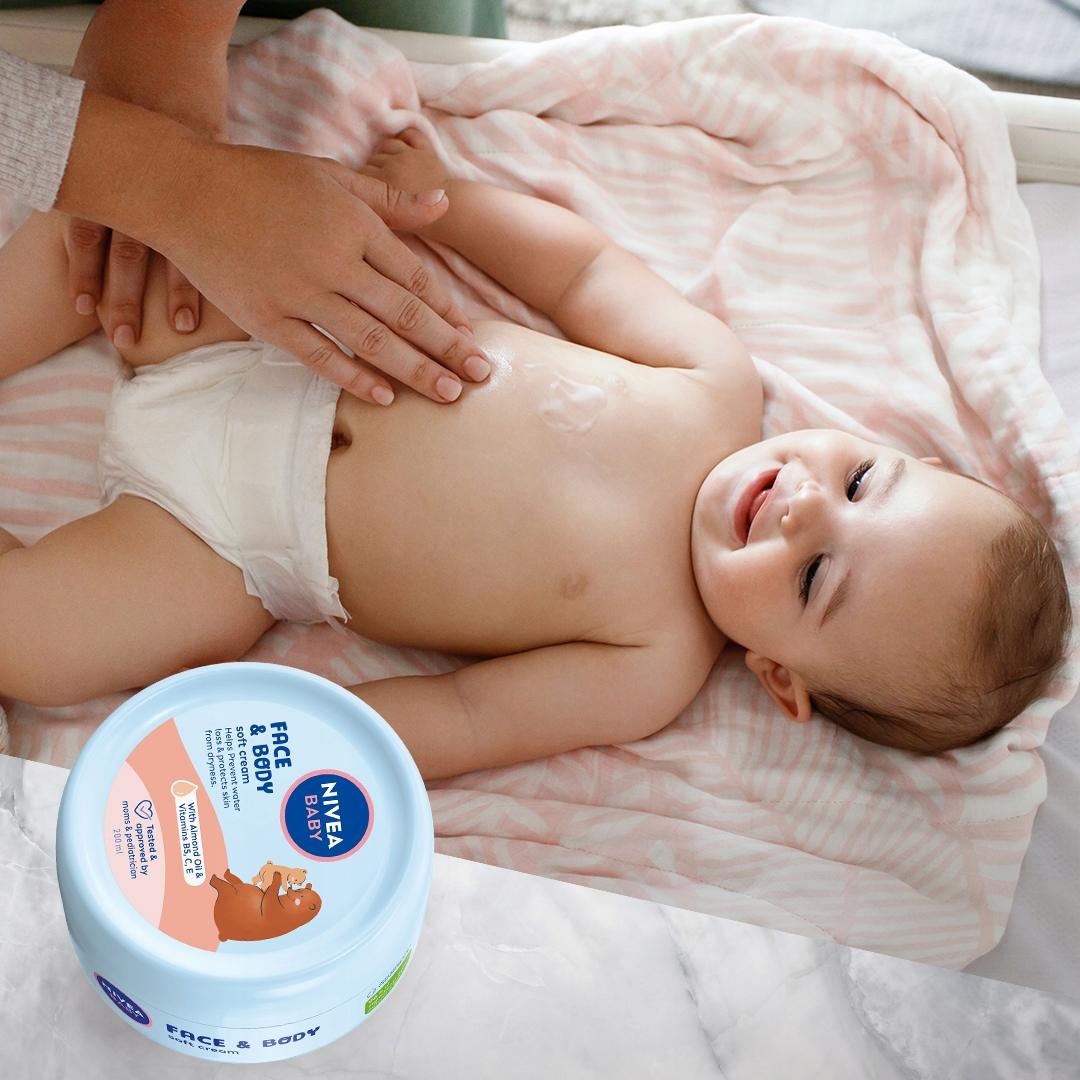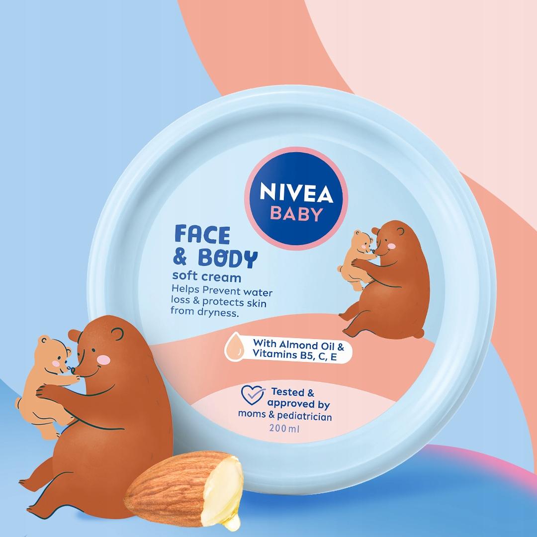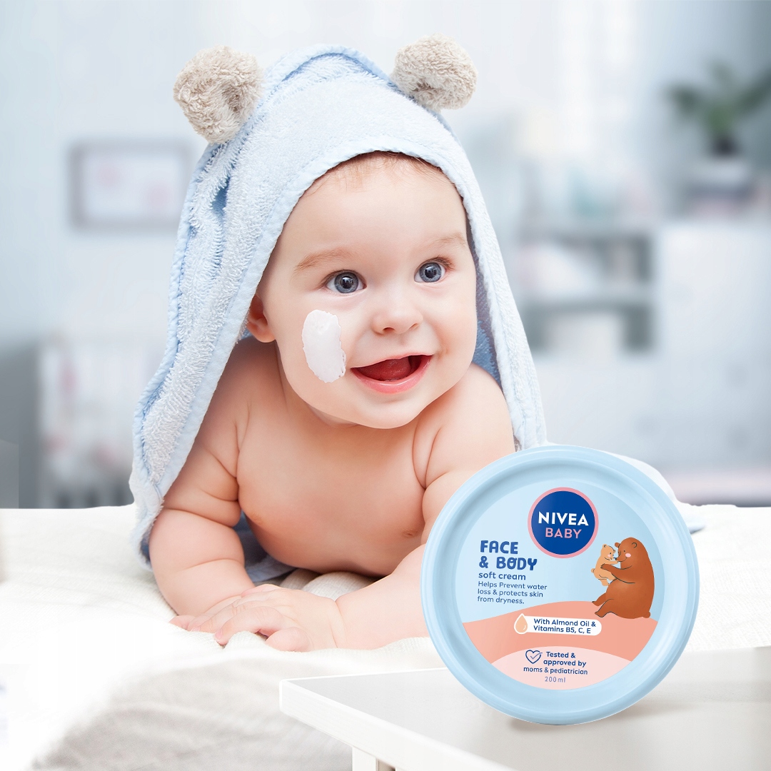 Odkryj nowość od NIVEA BABY Krem Pielęgnacyjny do twarzy i ciała, który nie tylko pomaga zapobiegać utracie wody, chroniąc skórę przed wysuszeniem, ale także chroni i wzmacnia skórę dziecka, wspierając jej naturalny proces rozwoju od 1. dnia życia. Zawiera w 100% naturalny olejek migdałowy i witaminy B5, C i E. Stworzony tak, aby minimalizować ryzyko alergii**.