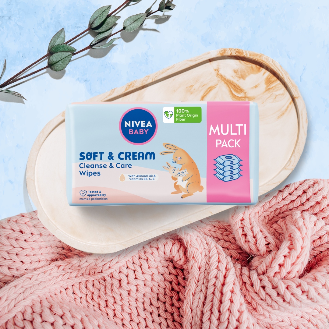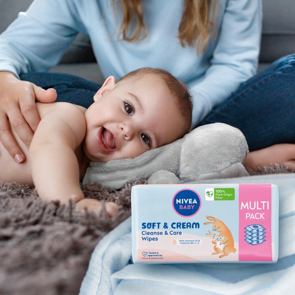 Odkryj nowość od NIVEA BABY Chusteczki Soft & Cream, które nie tylko łagodnie oczyszczają oraz pielęgnują, ale także pomagają chronić i wzmacniają skórę dziecka, wspierając jej naturalny proces rozwoju od 1. dnia życia. Zawierają w 100% naturalny olejek z migdałów i witaminy B5, C i E, wykonane są w 100% z włókien roślinnych.