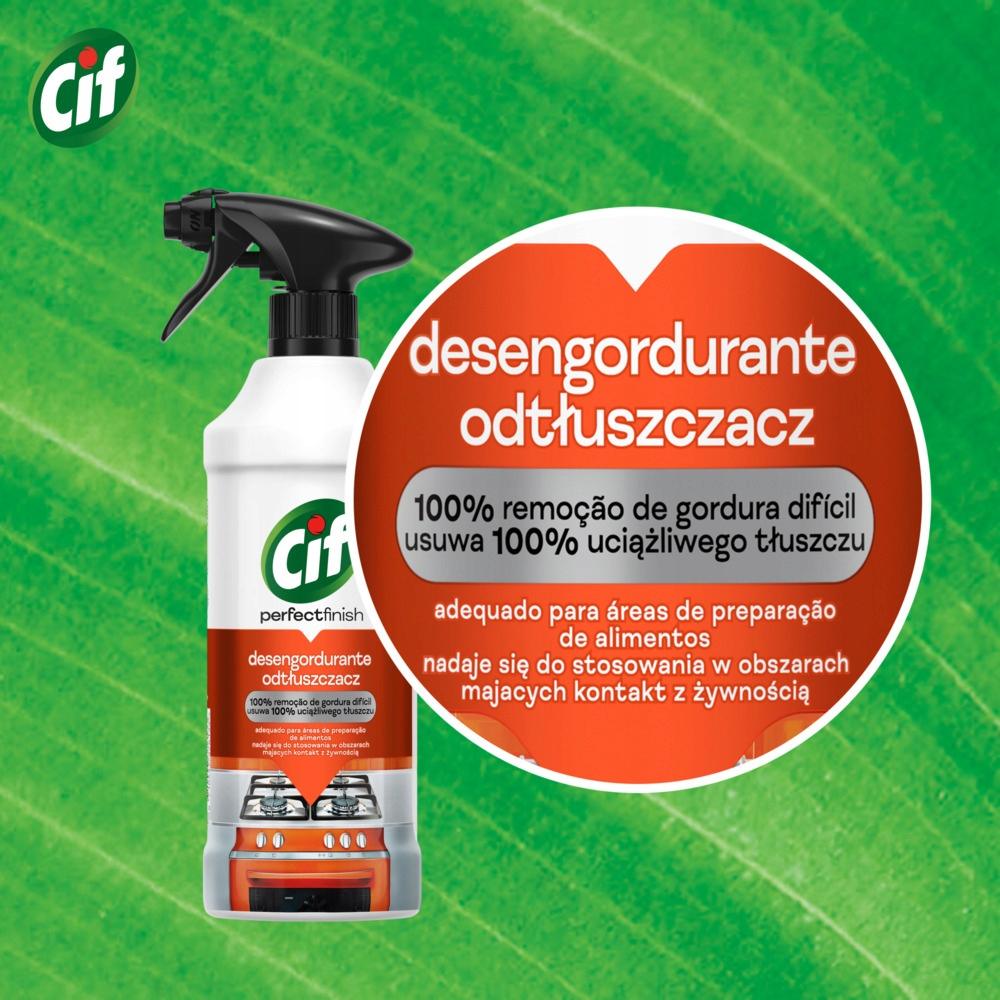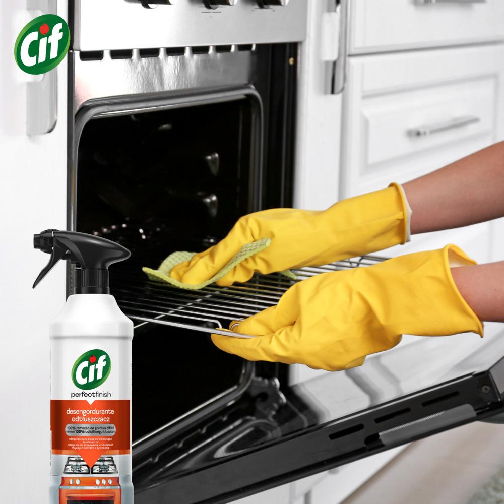 Specjalistyczny Spray Cif Perfect Finish Odtłuszczacz  usuwa 100% uporczywego tłuszczu z piekarnika i grilla, pozostawiając lśniąco czyste powierzchnie.