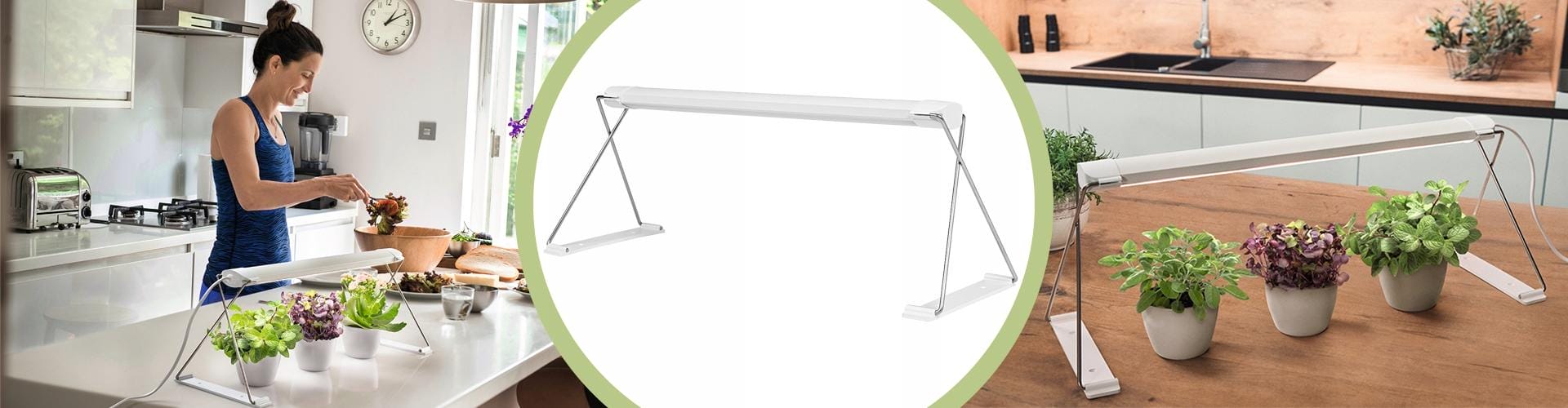 Dodatkowym atutem jest to, że prezentowana oprawa posiada regulacje wysokości, dzięki temu w prosty sposób możemy dopasować wysokość do potrzeb roślin. Lampa posiada dwa różne wsporniki (30,5cm oraz 19,8cm), które służą do regulowania wysokością w zależności od rośliny pod spodem.
