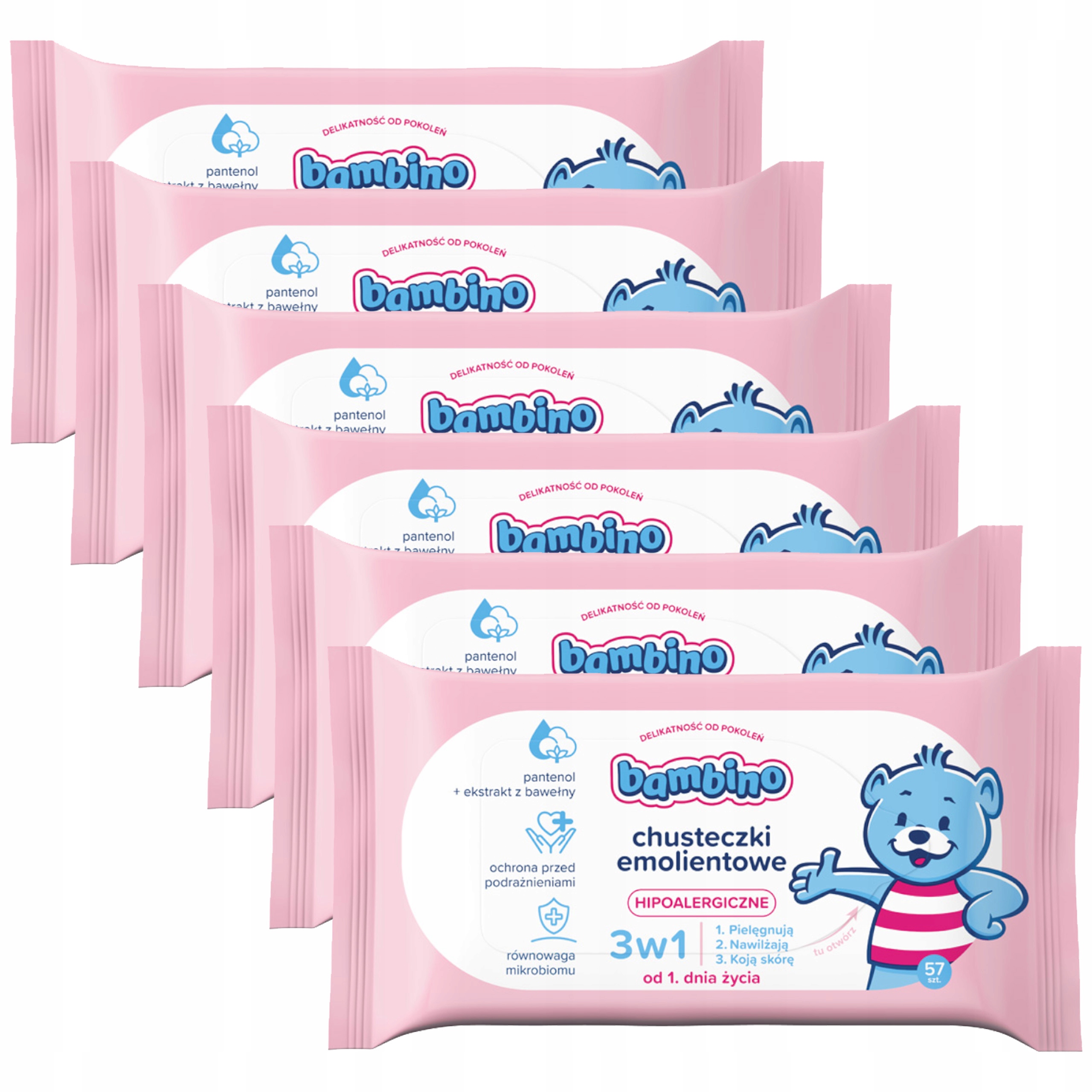 6 x BAMBINO Chusteczki emolientowe 3W1 57 szt.