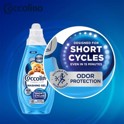 Coccolino Wonder Wash Odor Protection to innowacyjny żel do prania, stworzony specjalnie do krótkich cykli prania. Dzięki zaawansowanej technologii PRO-S, zapewnia czyste pranie już w 15 minut! Szybko działająca formuła skutecznie usuwa zabrudzenia i nieprzyjemne zapachy, pozostawiając ubrania świeże i pachnące przez długi czas. Ten wariant jest dedykowany do sportowych ubrań, zawierając formułę, która zwalcza nawet najbardziej intensywne zapachy, zapewniając długotrwałą świeżość.