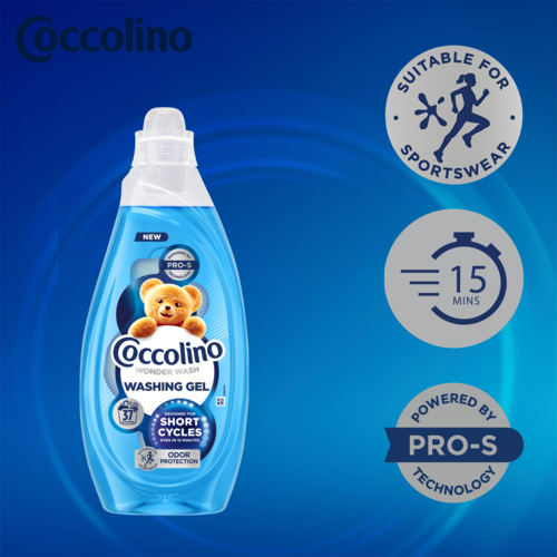 Coccolino Wonder Wash Odor Protection to innowacyjny żel do prania, stworzony specjalnie do krótkich cykli prania. Dzięki zaawansowanej technologii PRO-S, zapewnia czyste pranie już w 15 minut! Szybko działająca formuła skutecznie usuwa zabrudzenia i nieprzyjemne zapachy, pozostawiając ubrania świeże i pachnące przez długi czas. Ten wariant jest dedykowany do sportowych ubrań, zawierając formułę, która zwalcza nawet najbardziej intensywne zapachy, zapewniając długotrwałą świeżość.