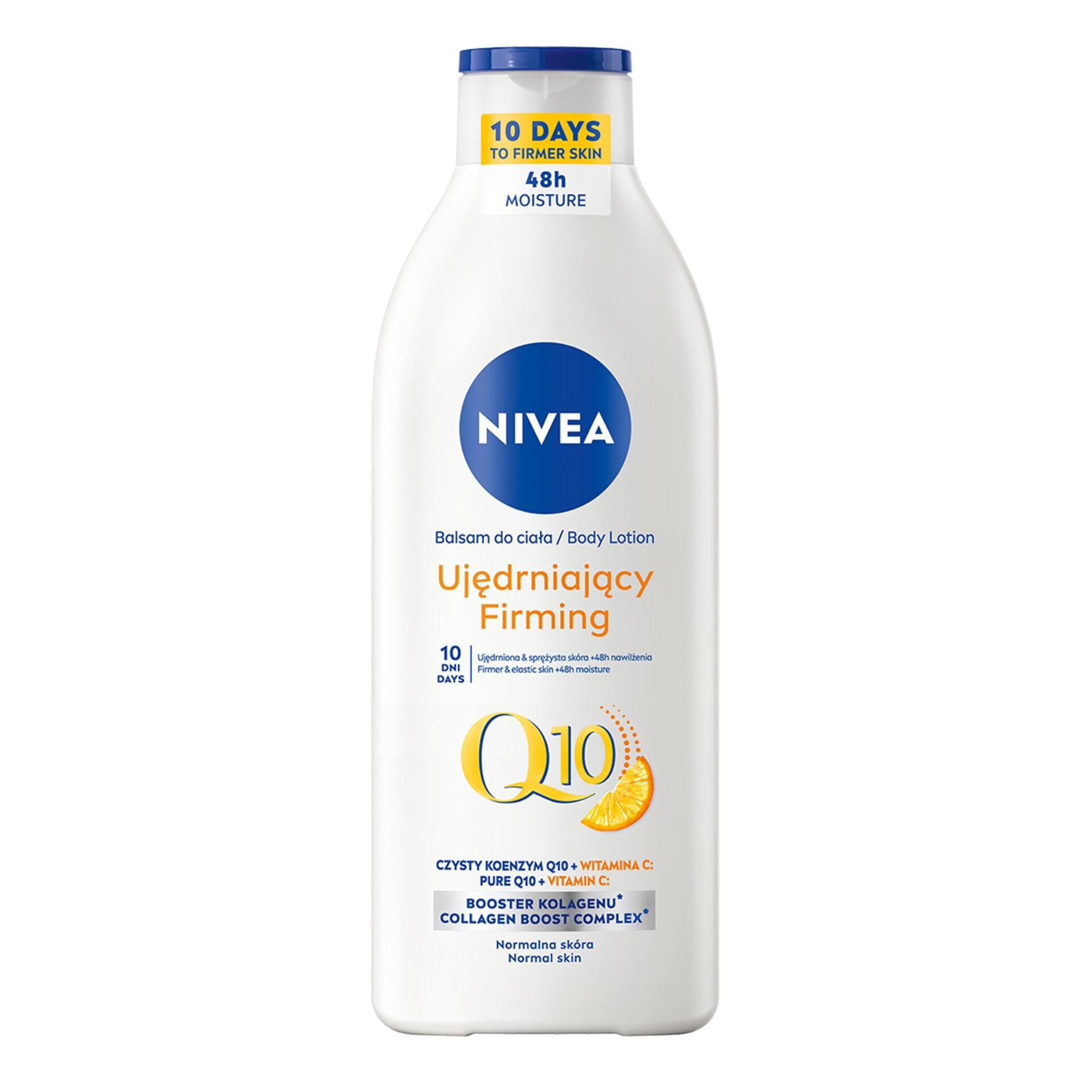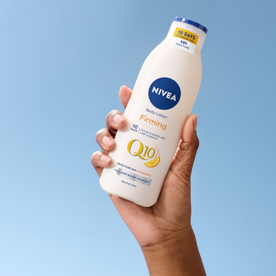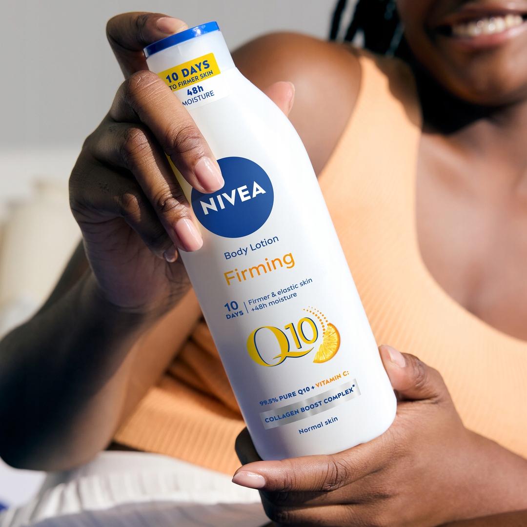 Ujędrniający balsam do ciała NIVEA® Q10 został wzbogacony o dwa silne antyoksydanty – koenzym Q10 i witaminę C. Udoskonalona formuła zauważalnie ujędrnia i poprawia sprężystość skóry już po 10 dniach stosowania! Ujędrniający balsam do ciała szybko się wchłania i przyjemnie pachnie. Intensywnie nawilża skórę przez 48 godzin oraz sprawia, że jest przyjemnie miękka, gładka w dotyku i wygląda zdrowo. Postaw na pielęgnację z ujędrniającym balsamem od NIVEA! Jak uzyskać najlepszy efekt ujędrniający, by zobaczyć efekty już po 10 dniach? Stosuj codziennie na całe ciało. Delikatnie wmasuj mleczko w skórę.