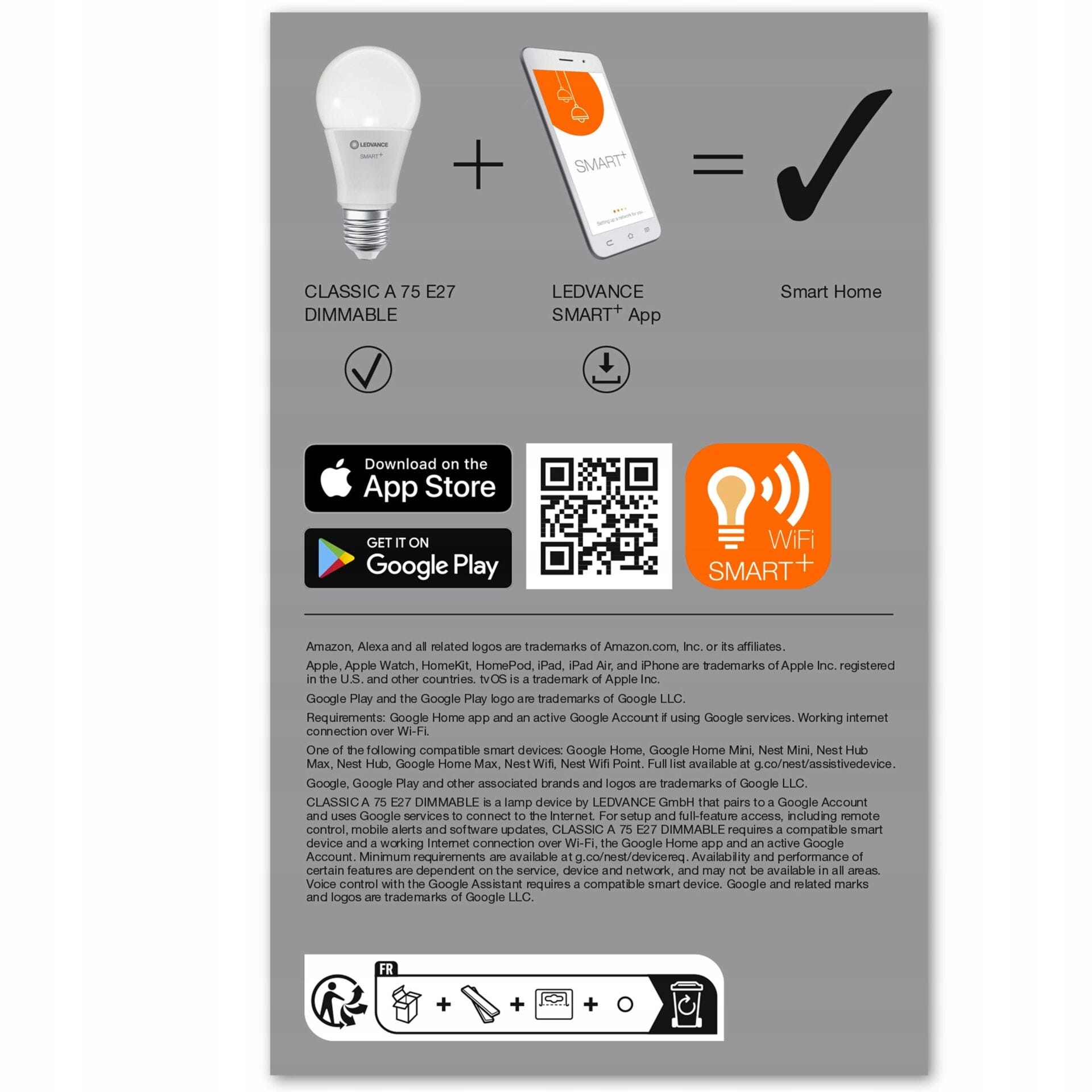 • Możliwość sterowania za pomocą aplikacji LEDVANCE SMART+ WiFi (z systemem Android™️ co najmniej 4.4 lub iOS 10.0).