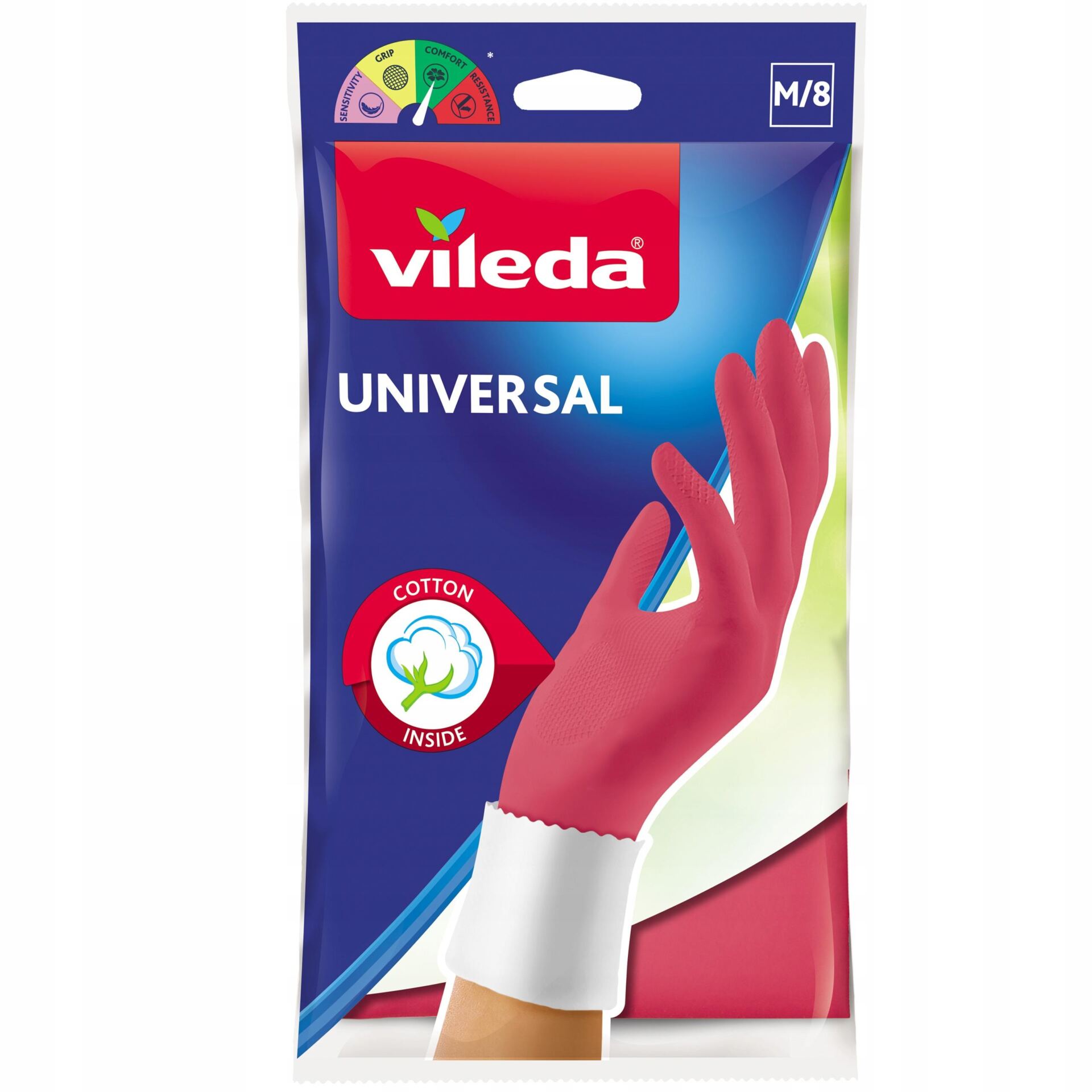 Rękawice Vileda to uniwersalne rękawice, idealne do wszystkich prac domowych. Posiadają taliowany kształt dzięki czemu lepiej przylegają do dłoni. Bawełniana wyściółka zwiększa komfort używania oraz ułatwia zakładanie i ściąganie. Specjalna antypoślizgowa powierzchnia rękawic pozwala bezpiecznie trzymać mokre i suche przedmioty.