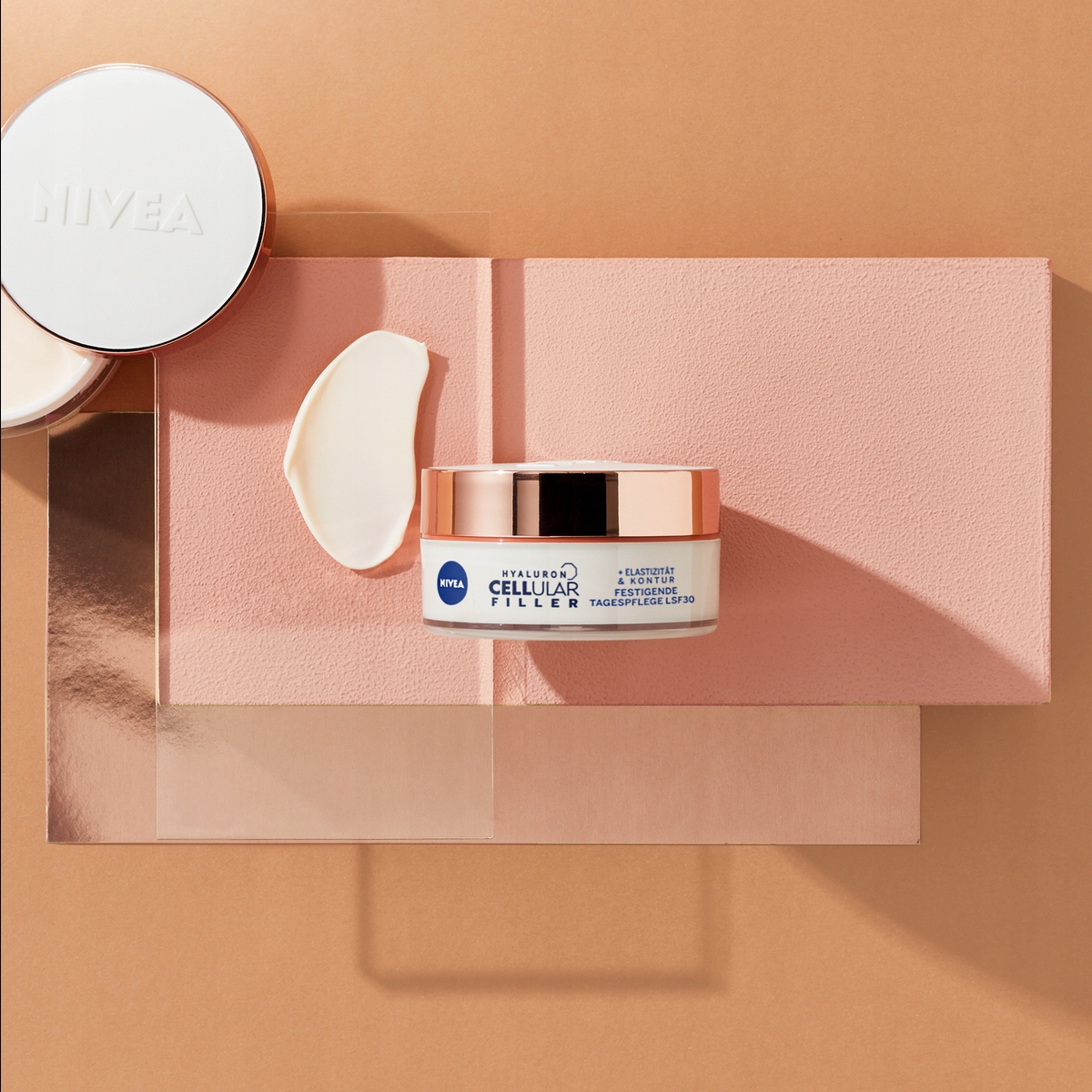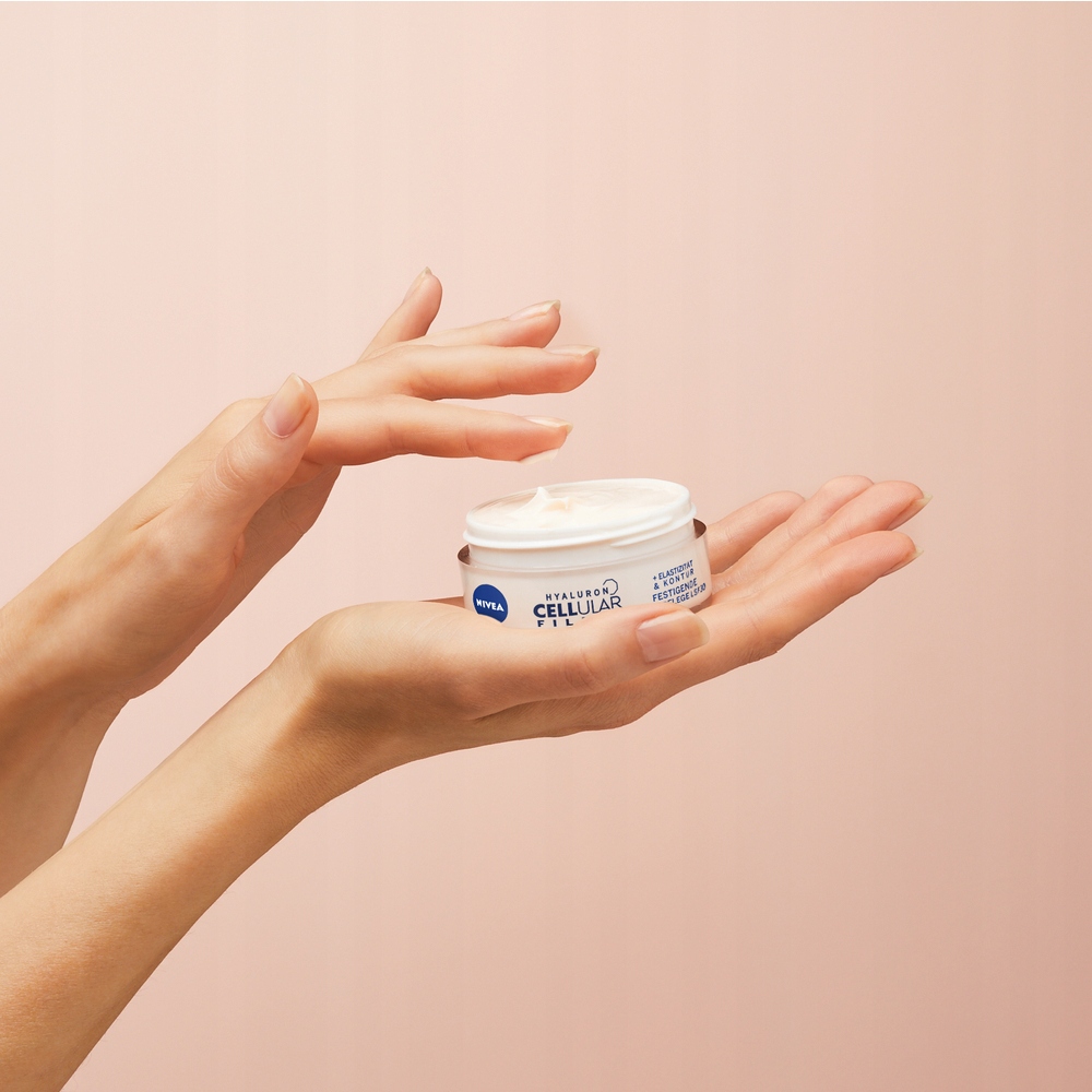 NIVEA Cellular Expert Lift Krem Anti-Age na dzień wyraźnie poprawia kontur twarzy dzięki połączeniu silnych składników przeciwstarzeniowych nowej generacji od NIVEA. Czysty bakuchiol, aktywny składnik przeciwstarzeniowy wspiera procesy pobudzające produkcję kolagenu w komórce już po 4 godzinach od zastosowania*. Pomaga w zwiększeniu jędrności i gęstości włókien skóry. Mikro- i Makrocząteczkowy kwas hialuronowy, 2 typy kwasu hialuronowego znane ze swoich właściwości nawilżających i wygłądzających, pomagają w redukcji zmarszczek.