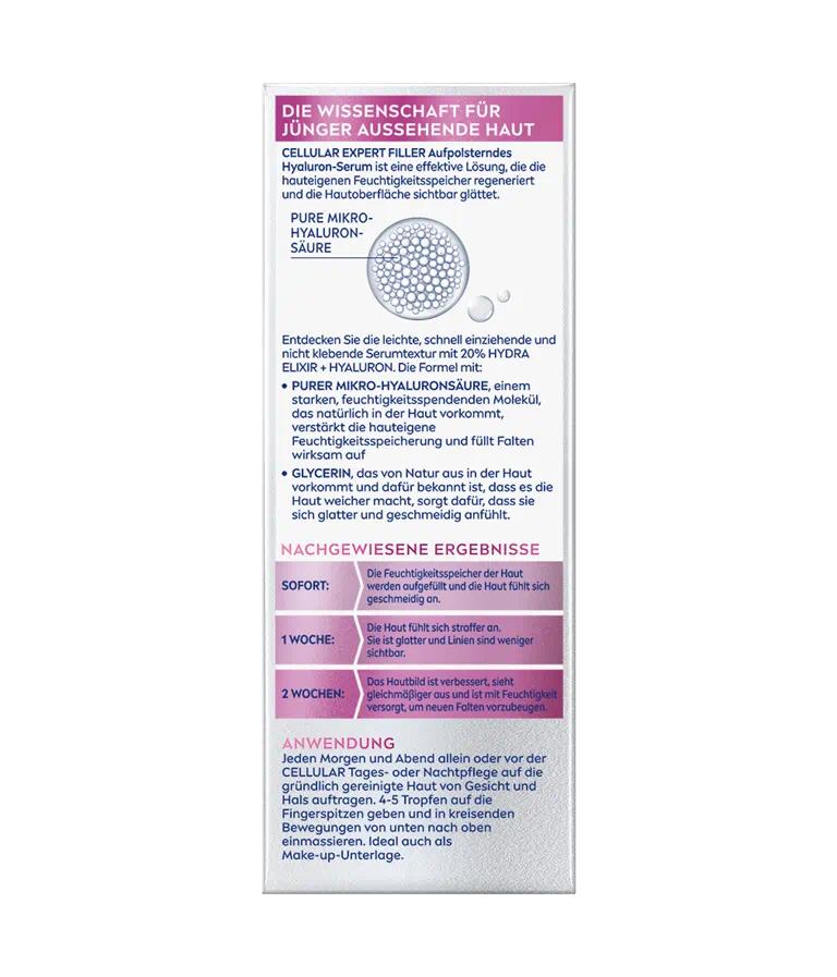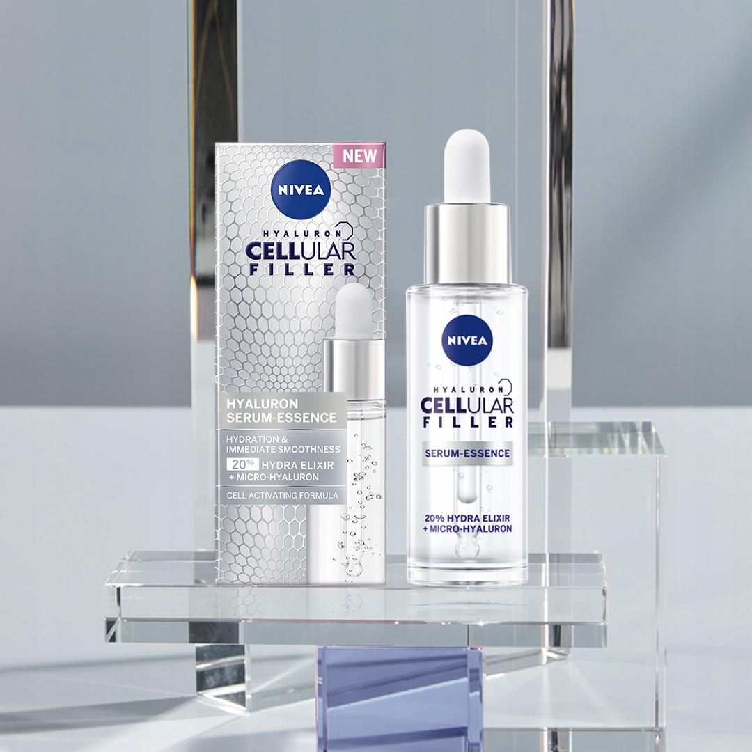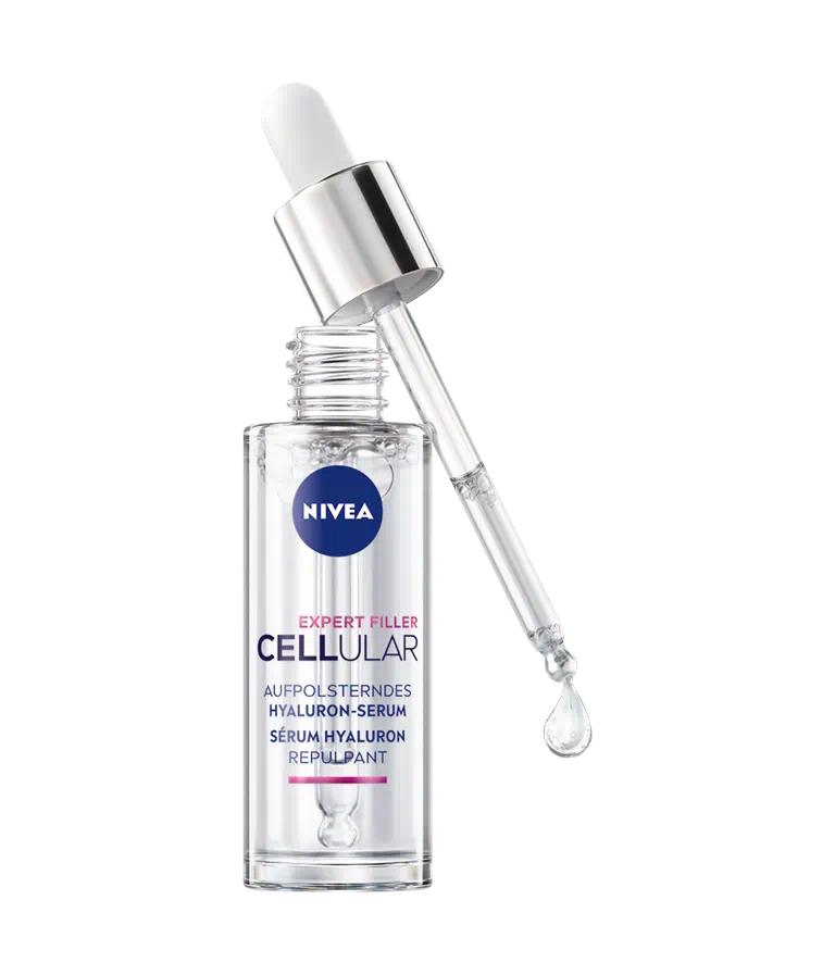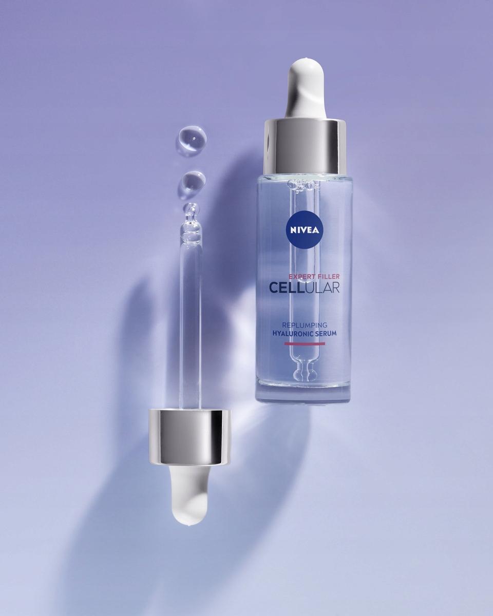 NIVEA® CELLULAR EXPERT FILLER WYPEŁNIAJĄCE SERUM HIALURONOWE zawiera Kwas Hialuronowy, który aktywuje komórki*, by niwelować oznaki starzenia się skóry. Dzięki lekkiej formule szybko się wchłania i nie pozostawia uczucia lepkości na skórze.