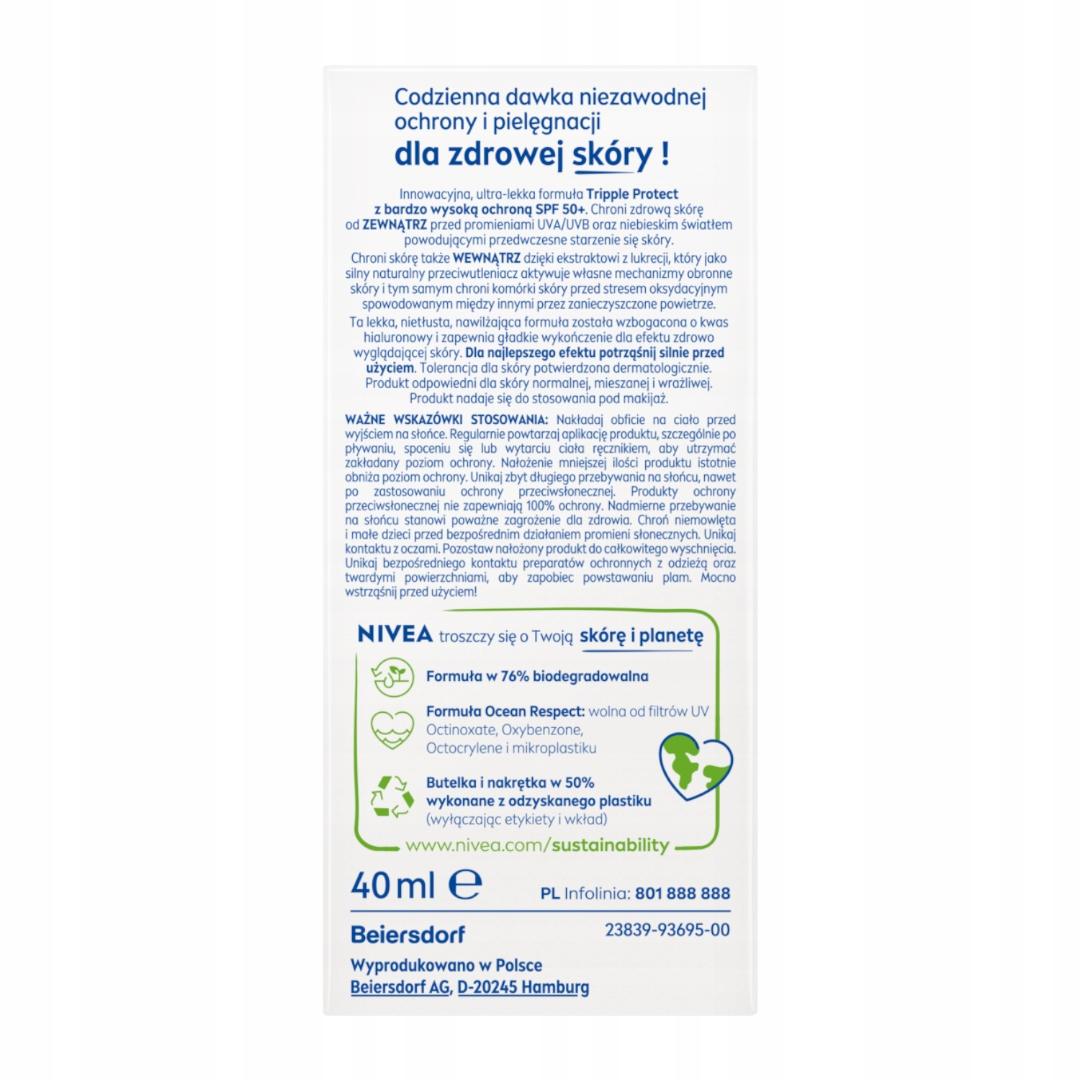 NIVEA SUN Tripple Protect Fluid do twarzy SPF50+ 40 ml