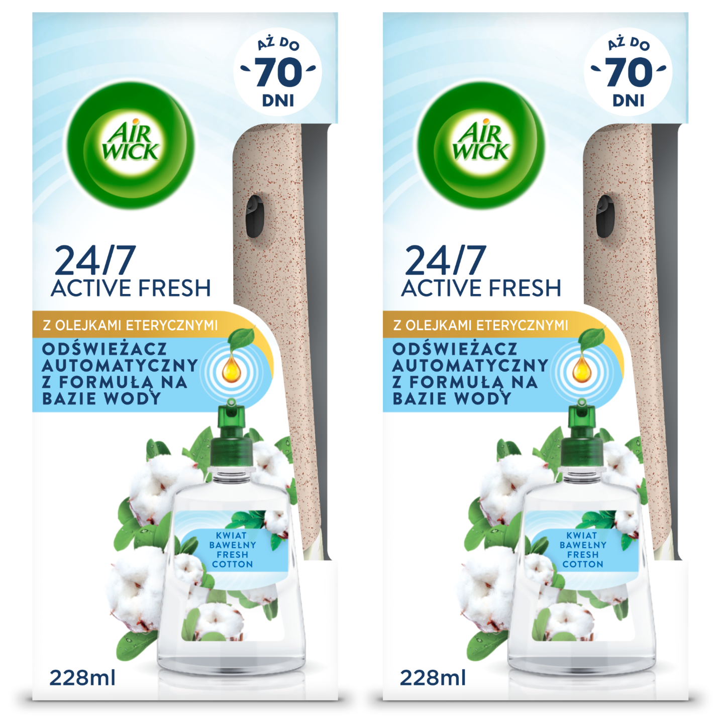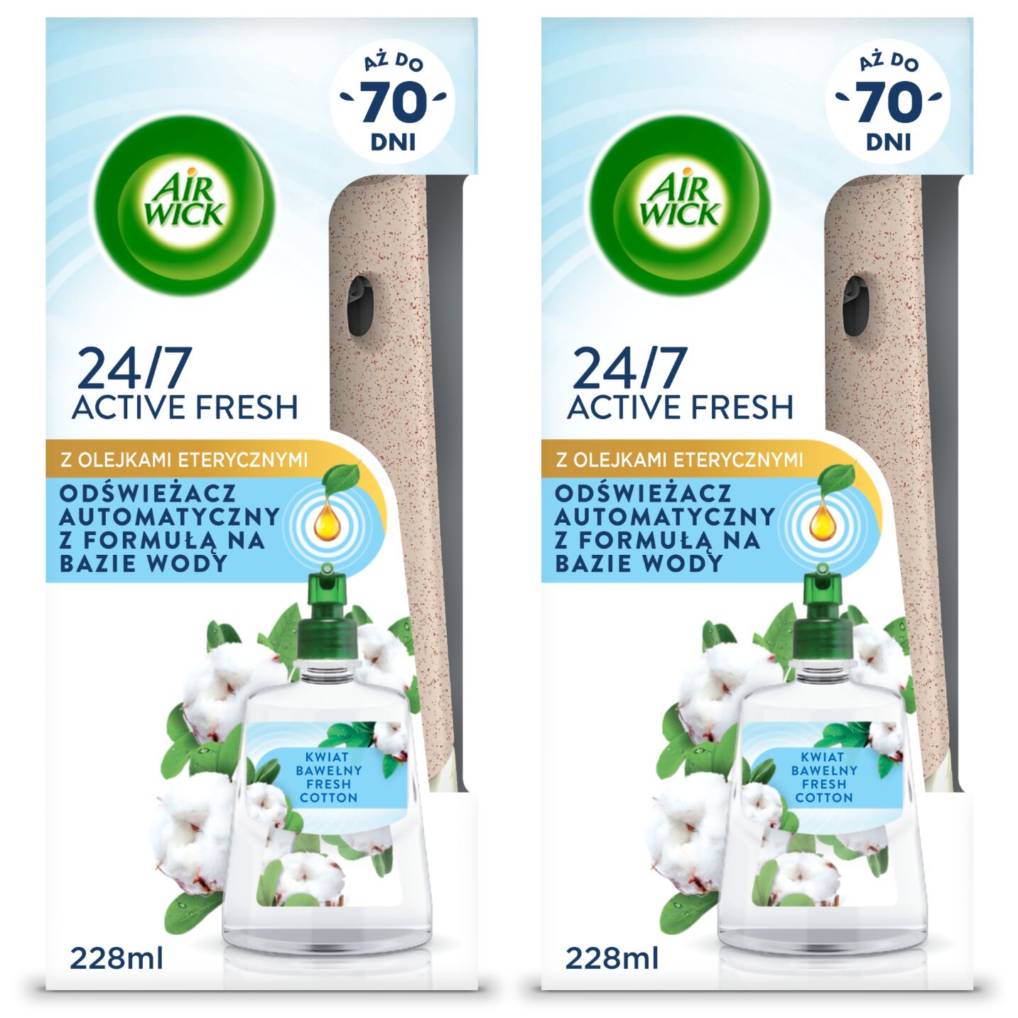 AIR WICK Automatyczny odświeżacz powietrza z wkładem Air Wick 24/7 ACTIVE FRESH o zapachu kwiatu bawełny 228 ml *2