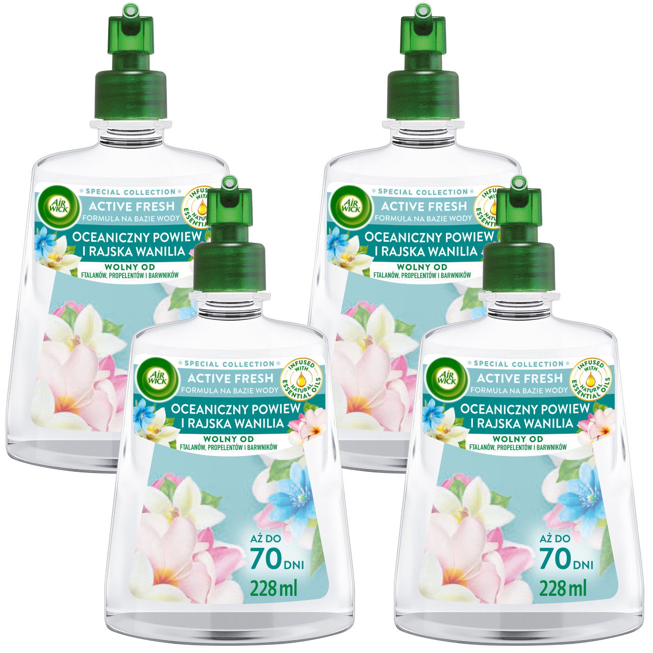 • x4 Air Wick Active Fresh wkład oceaniczny powiew i rajska wanilia 228ml