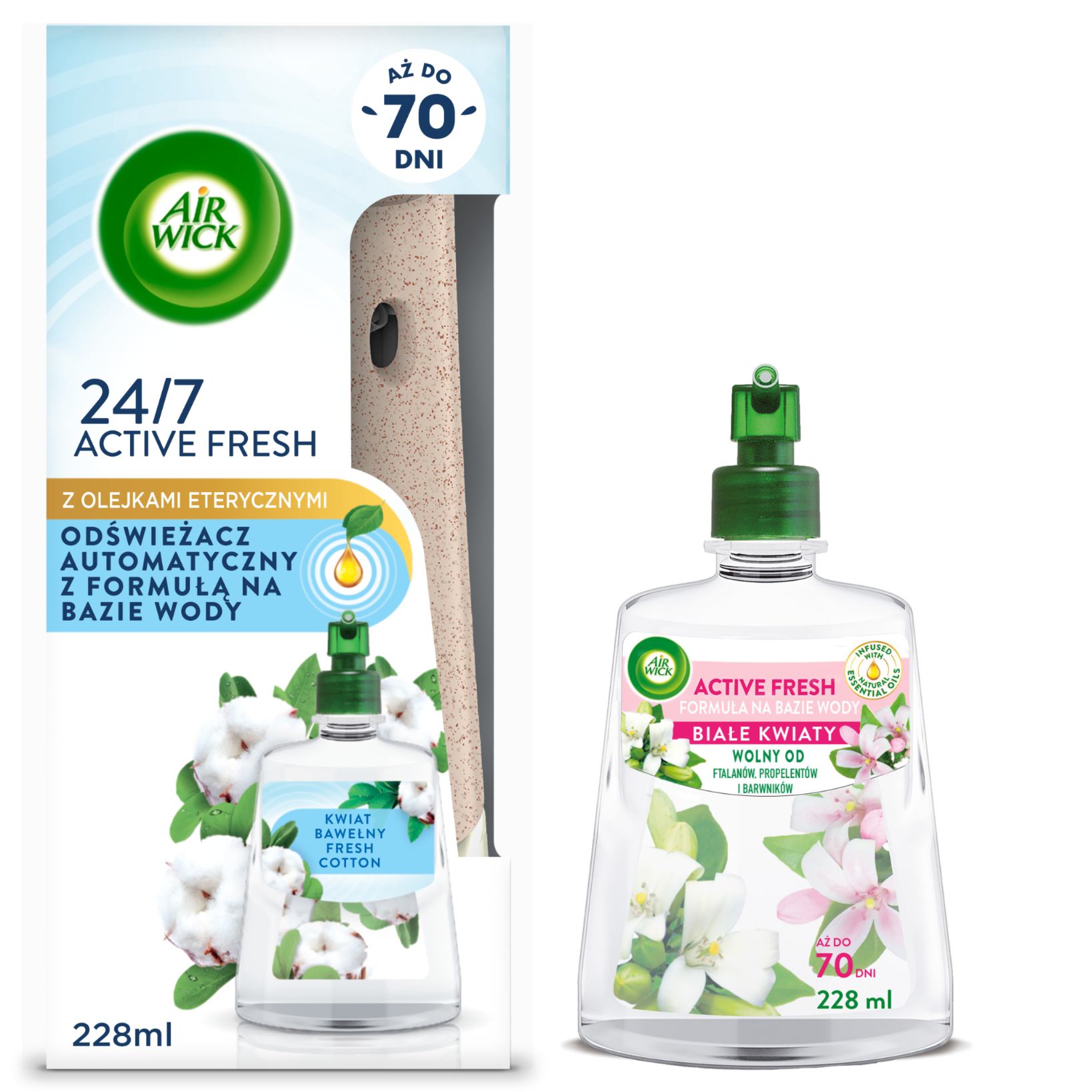 AIR WICK Automatyczny odświeżacz powietrza z wkładem Air Wick 24/7 ACTIVE FRESH o zapachu kwiatu bawełny 228 ml