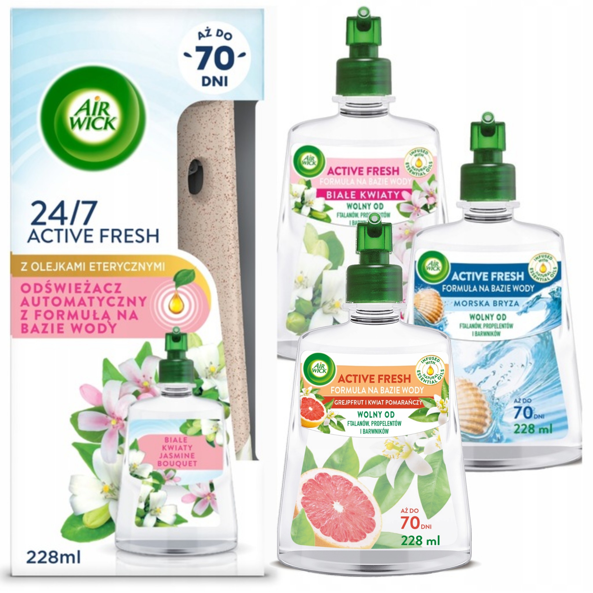 AIR WICK Automatyczny odświeżacz powietrza z wkładem Air Wick 24/7 ACTIVE FRESH o zapachu białych kwiatów 228 ml