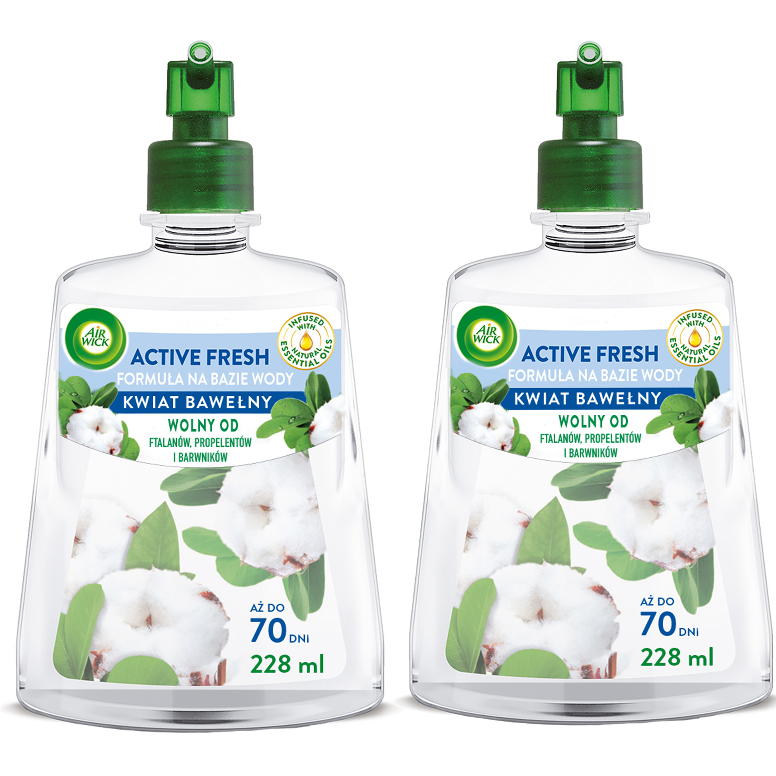 AIR WICK Wkład do automatycznego odświeżacza powietrza Air Wick 24/7 ACTIVE FRESH o zapachu kwiatu bawełny 228 ml x2