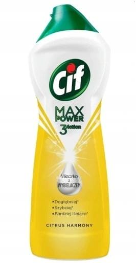 - Cif Max Power Mleczko wybielające Citrus Harmony usuwa trudne zabrudzenia z białych powierzchni, pozostawiając połysk bez smug.