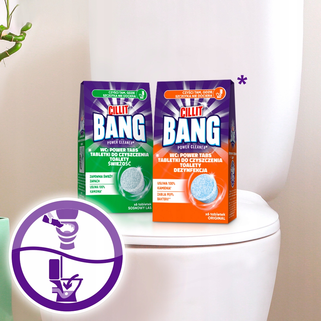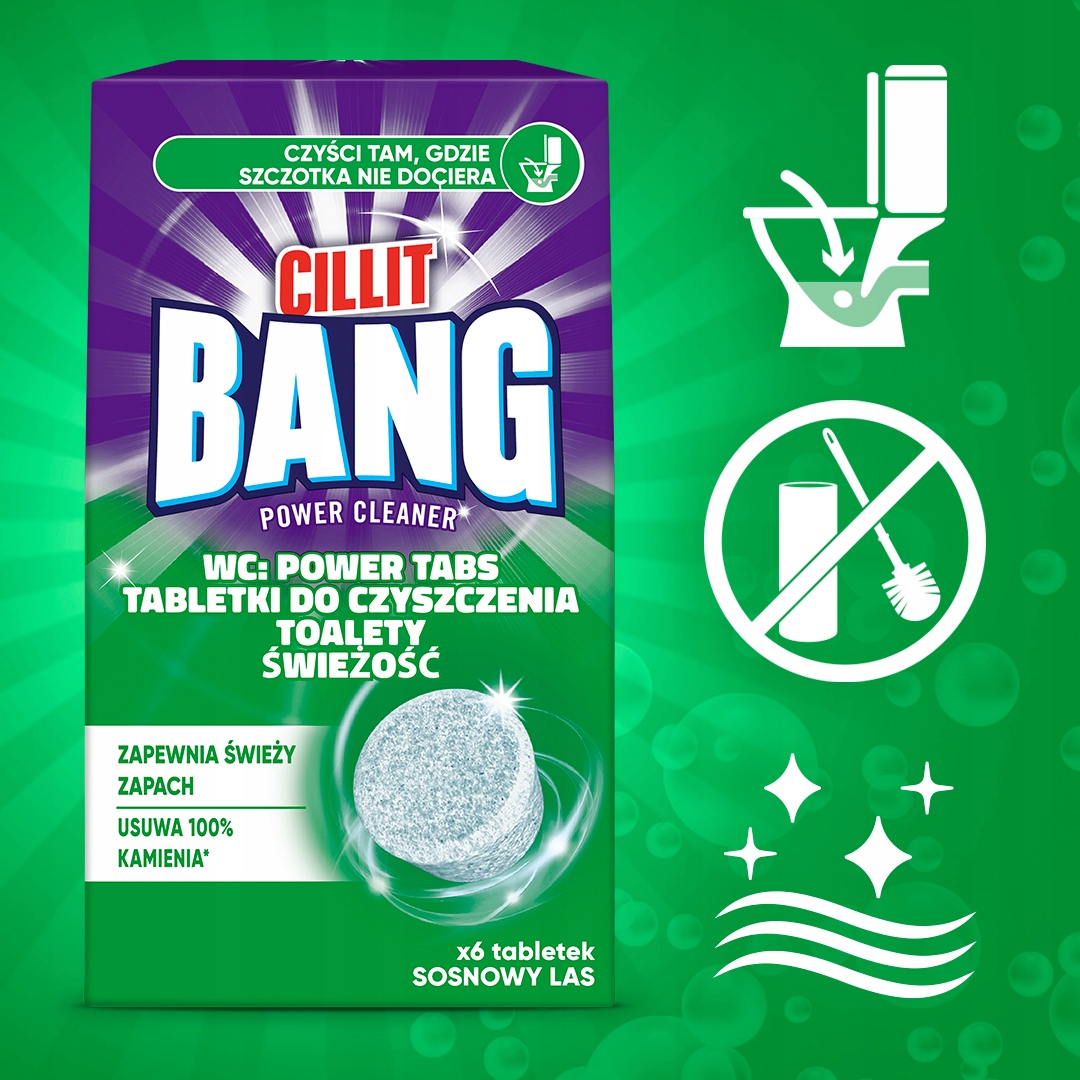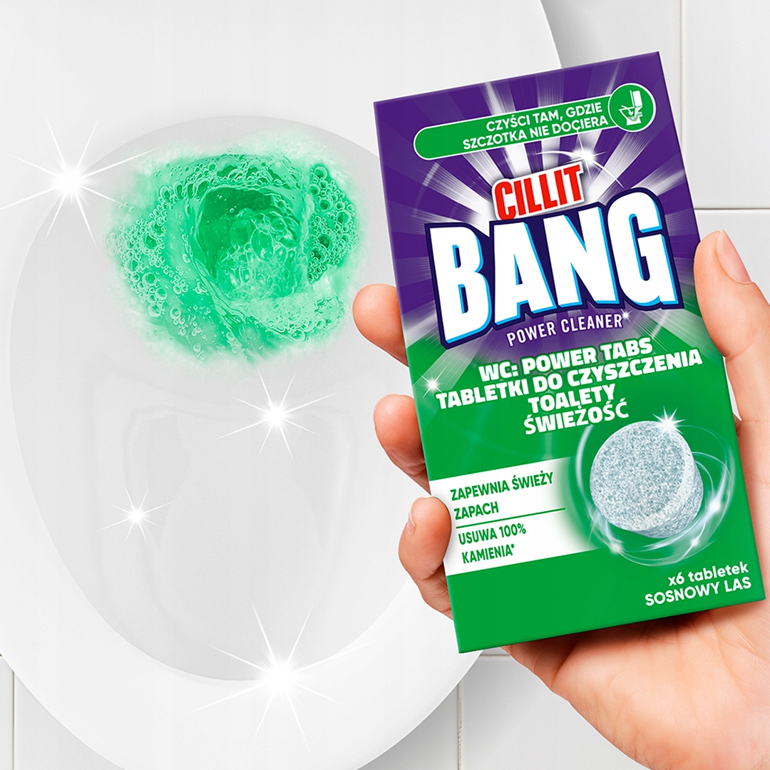 Tabletki do czyszczenia toalety Cillit Bang WC: Power Tabs zostały stworzone, aby skutecznie usuwać trudne plamy w toalecie zapewniając najlepsze efekty czyszczenia sedesów.