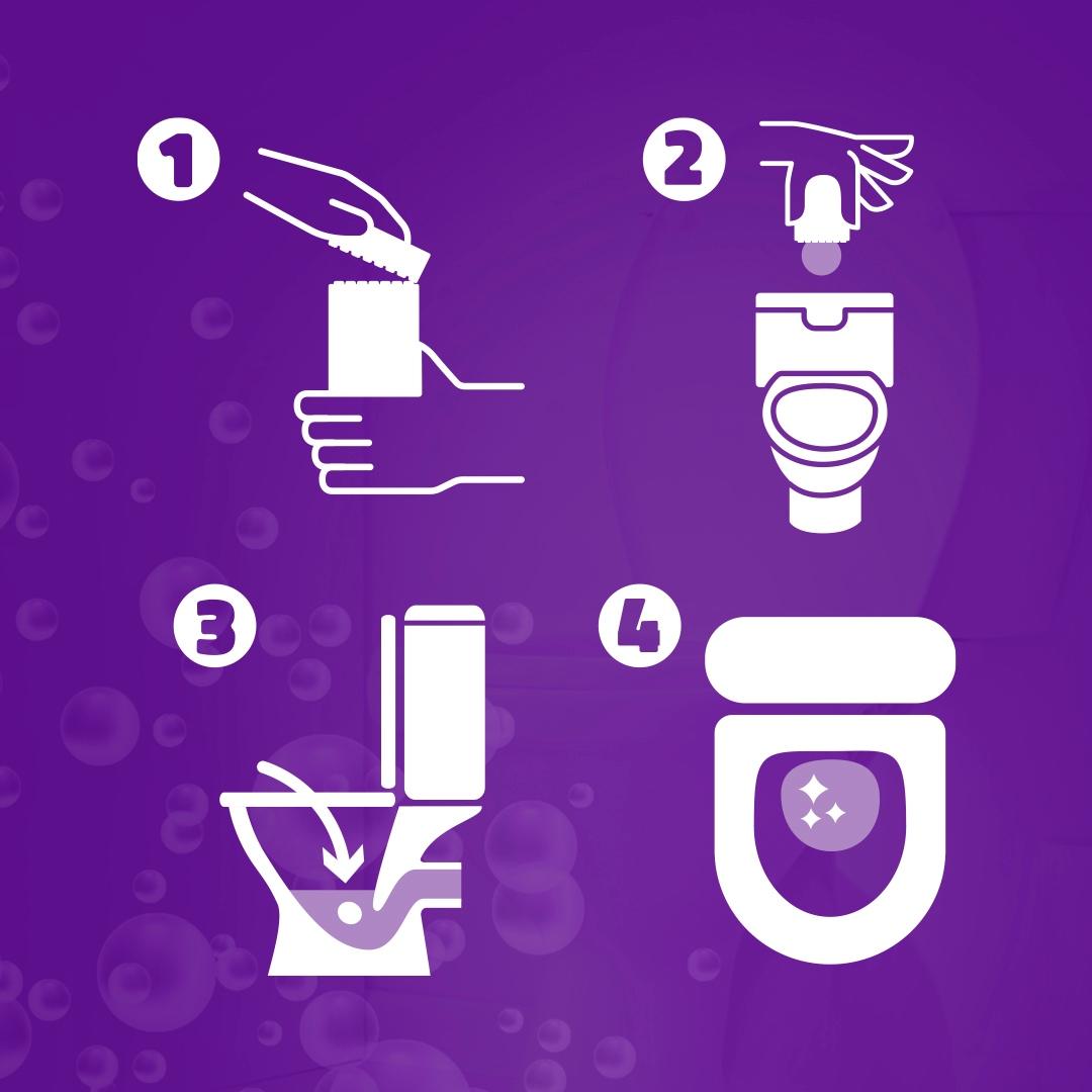- Wrzuć tabletkę do muszli (bez dotykania)