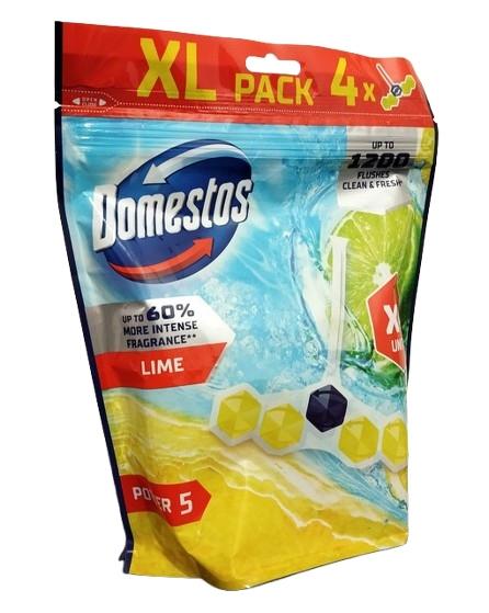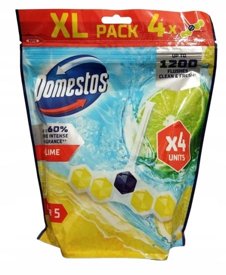 - Kostki toaletowe Domestos Power 5 Lime w zestawie 4 sztuk zapewniają higieniczną czystość i świeżość w toalecie aż do 1200 spłukań*
