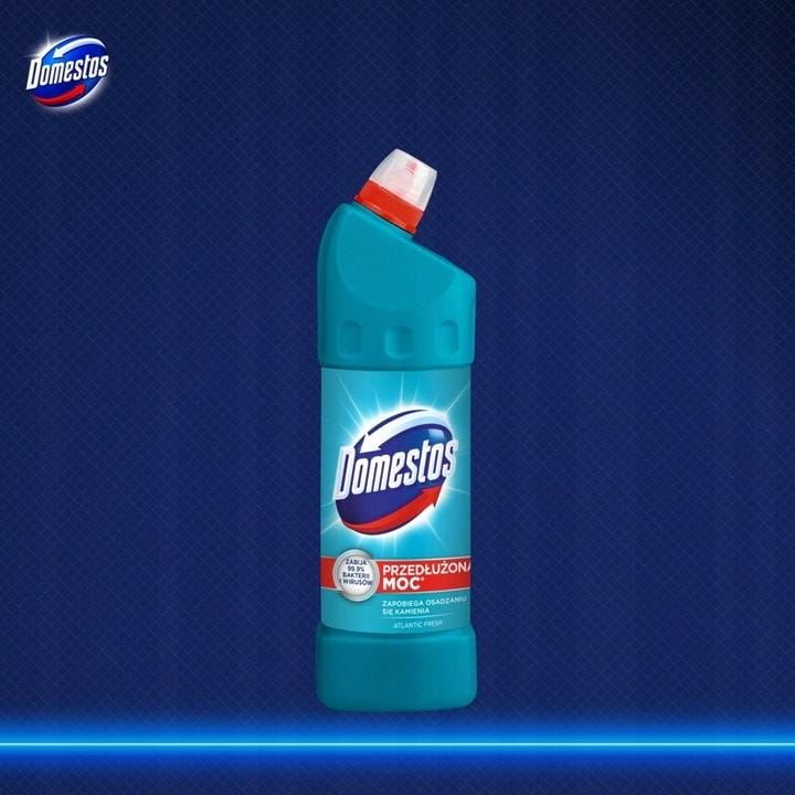 Domestos Przedłużona Moc Atlantic Fresh to bezwzględny chlorowy płyn z aktywnymi cząsteczkami, który nie tylko czyści i chroni toaletę przed zarazkami, ale także skutecznie zapobiega osadzaniu się kamienia w muszli toaletowej.