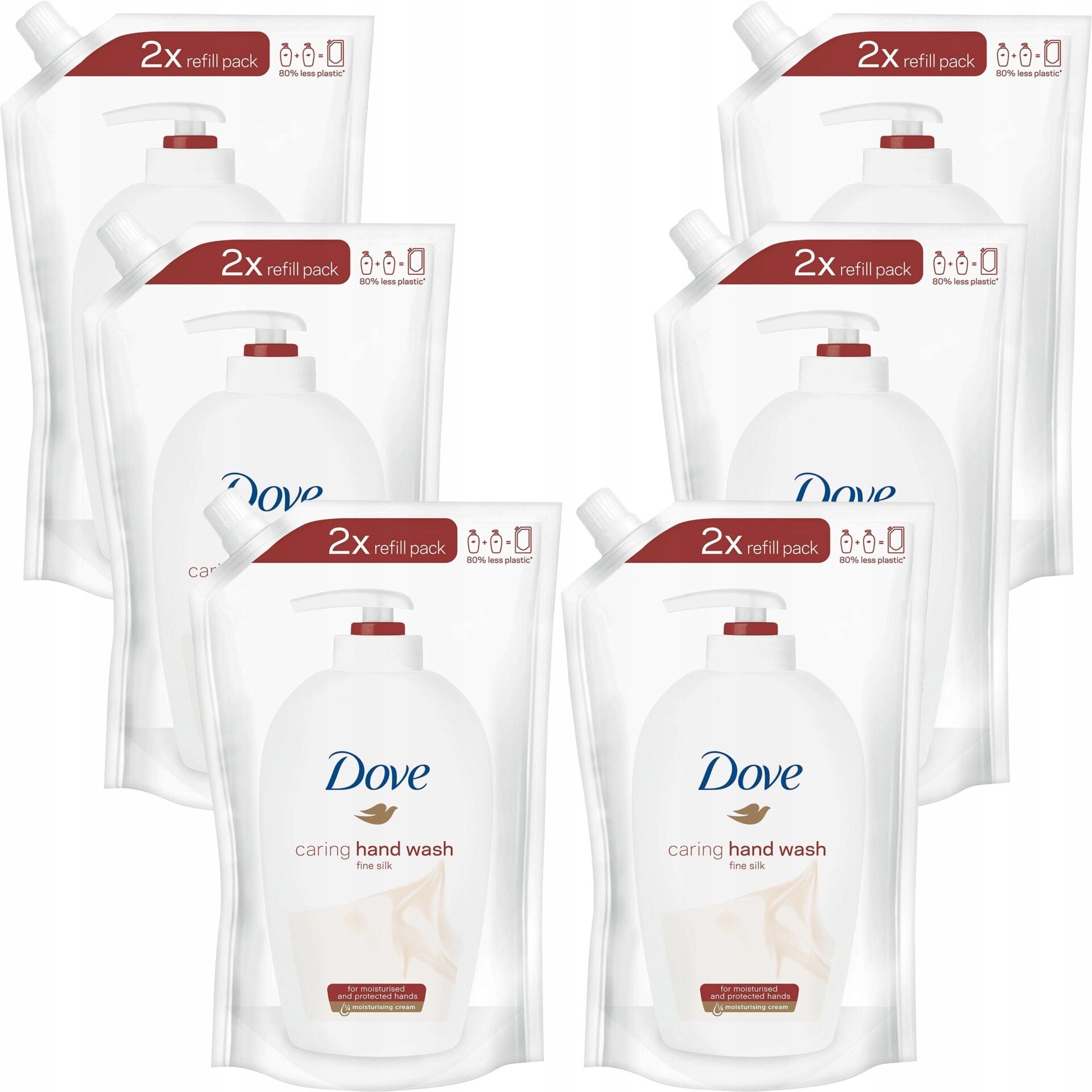 • 6x Dove Caring Hand Wash Fine Silk Mydło W Płynie Zapas 500ml