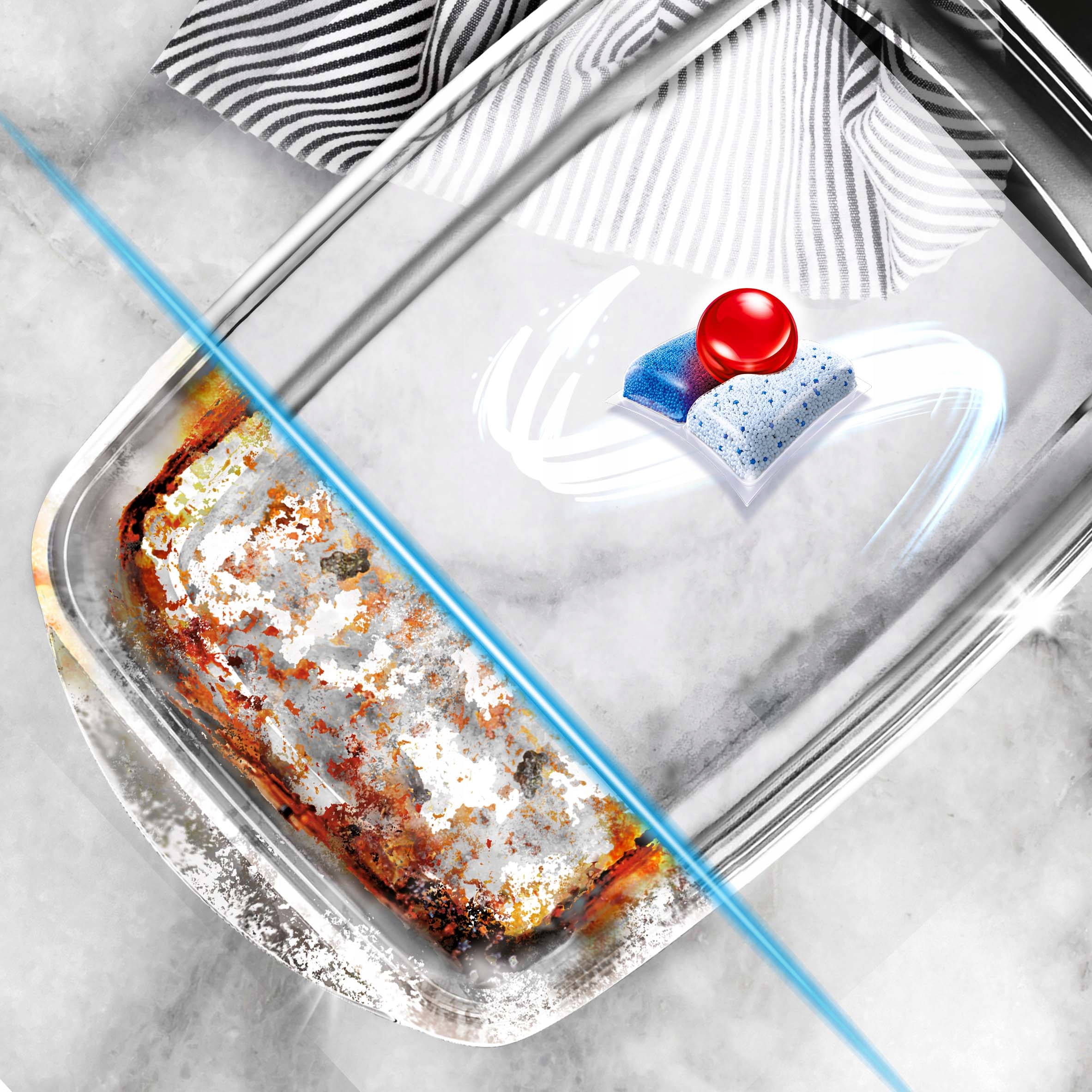Łatwa w użyciu kapsułka, w rozpuszczalnej folii, usuwa wszystkie rodzaje pozostałości jedzenia, również w niskich temperaturach. Za każdym razem.