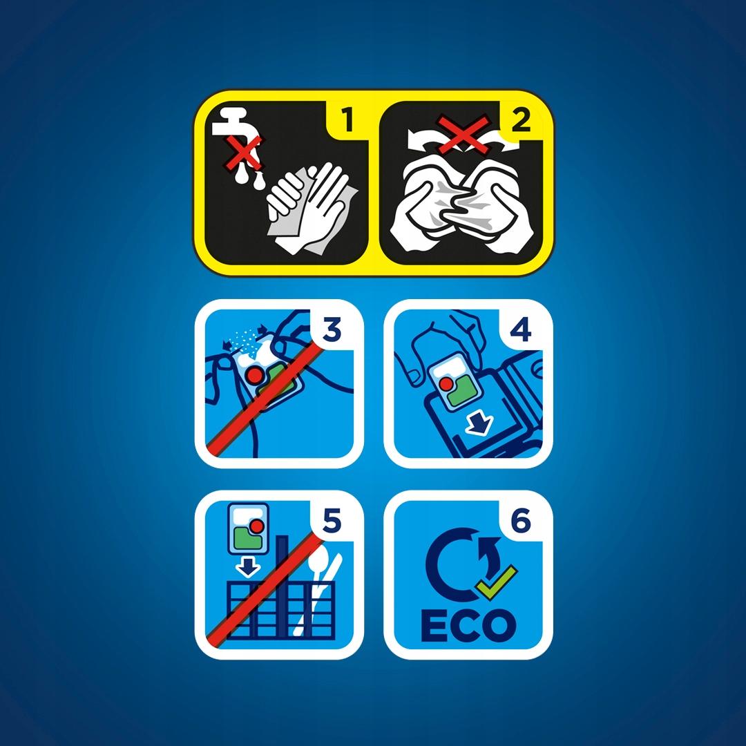 - Do każdego zmywania umieść kapsułkę w SUCHYM dozowniku.