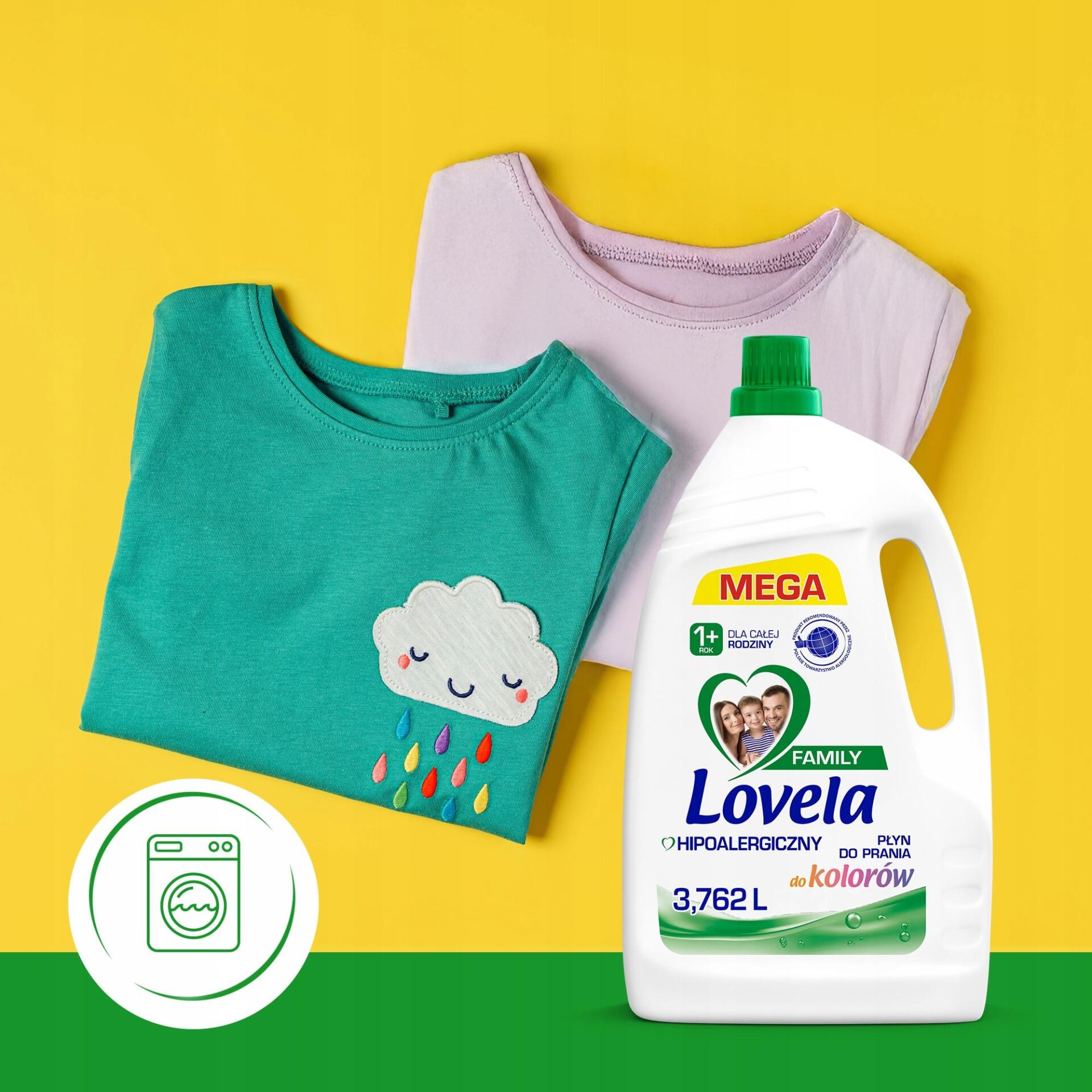 Hipoalergiczny płyn do kolorów Lovela Family to NOWOŚĆ, o wyjątkowej formule, która pozwoli Ci jednocześnie zadbać o wrażliwą skórę i skutecznie poradzić sobie z zabrudzeniami ubrań całej rodziny.