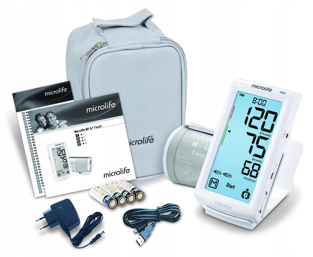 - Microlife A7 TOUCH posiada ekran dotykowy z innowacyjnymi dokładnymi technologiami ciśnienia krwi Microlife, tworząc najbardziej zaawansowany ciśnieniomierz.