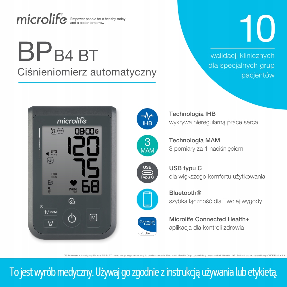 Microlife BP B4 BT posiada aż 10 walidacji klinicznych.
