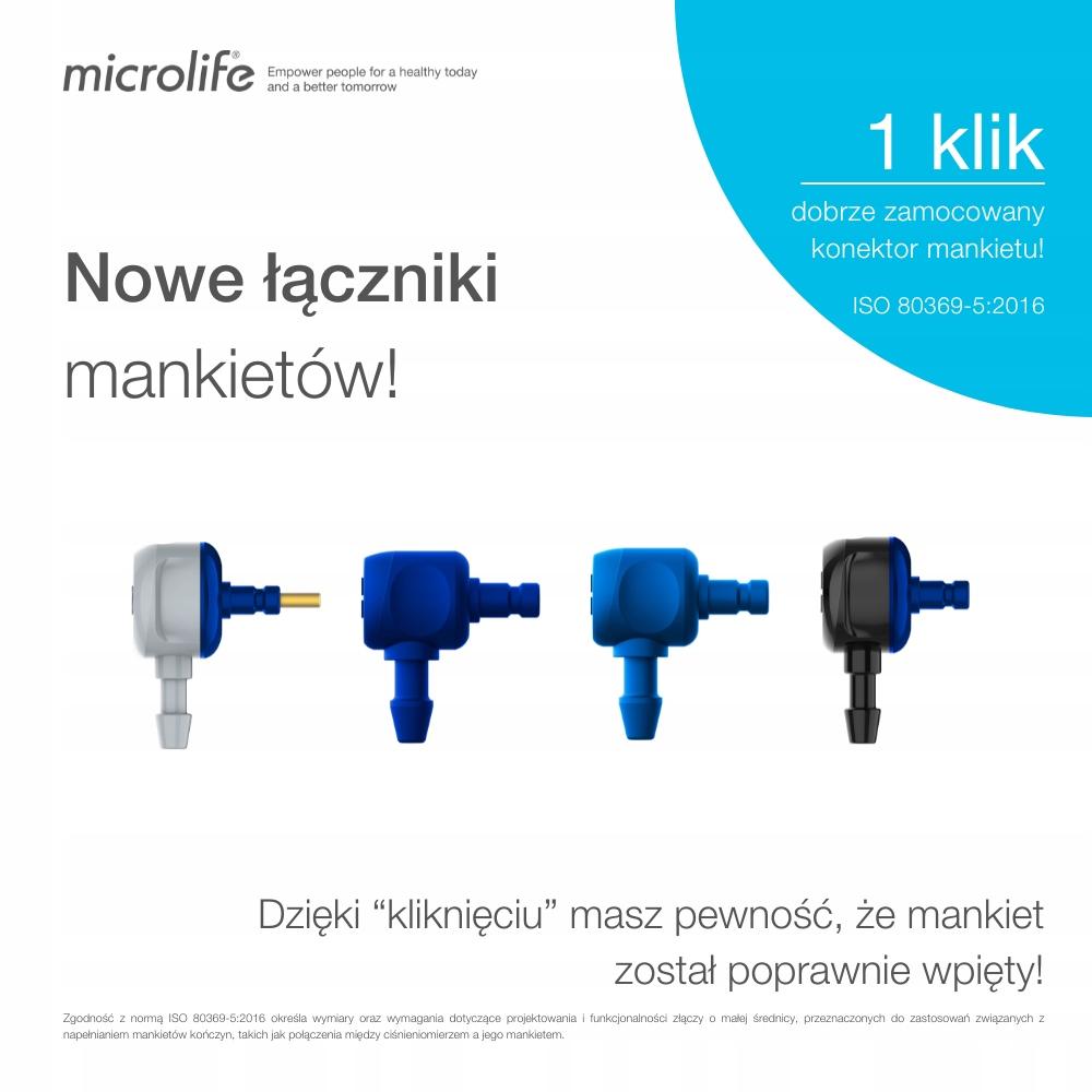 Microlife BP B4 BT został wyposażony w nowoczesne złącze mankietu, które jest zgodne z międzynarodową normą ISO 80369-5. Oznacza to: