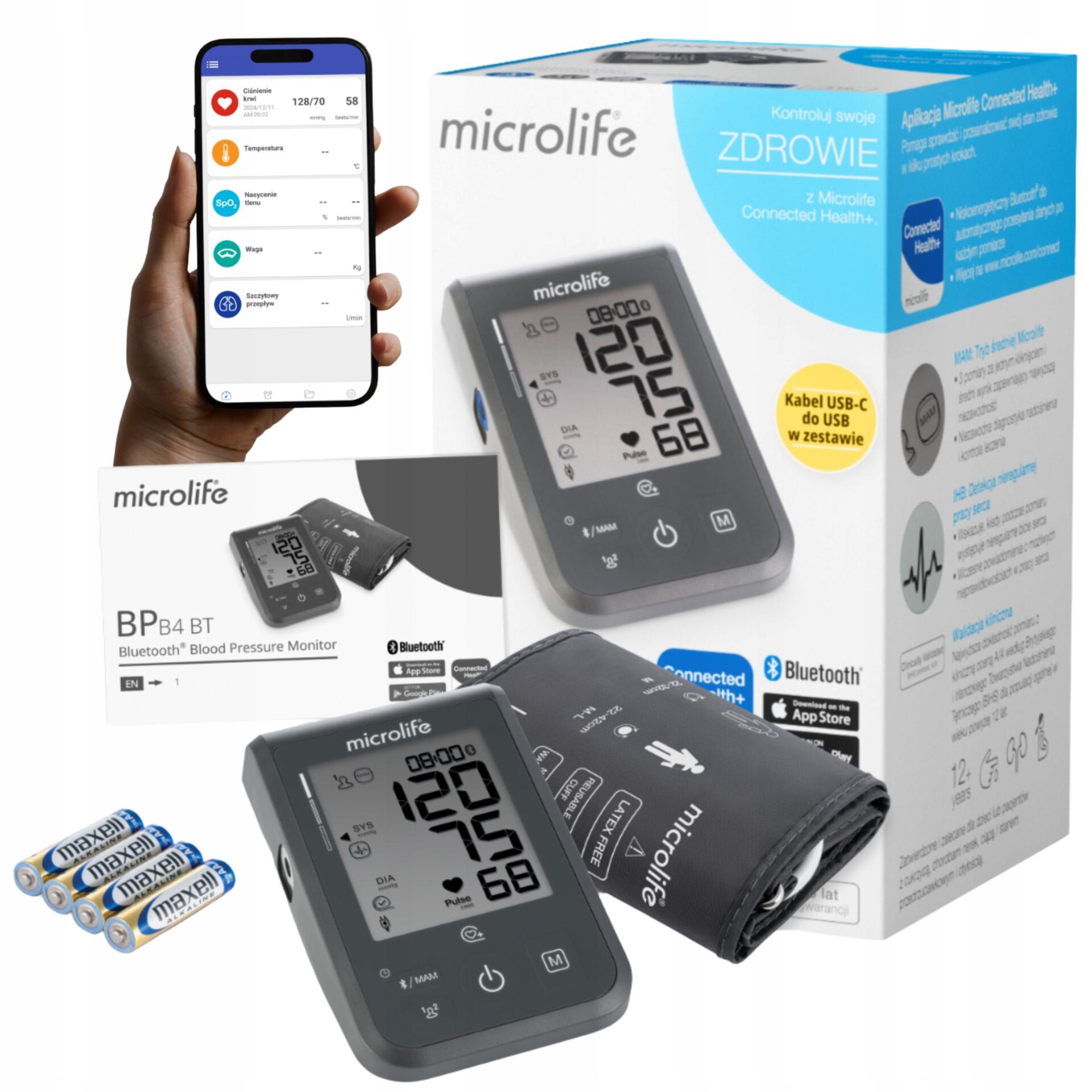 Microlife BP B4 BT posiada złącze USB-C, które ułatwia codzienne użytkowanie: